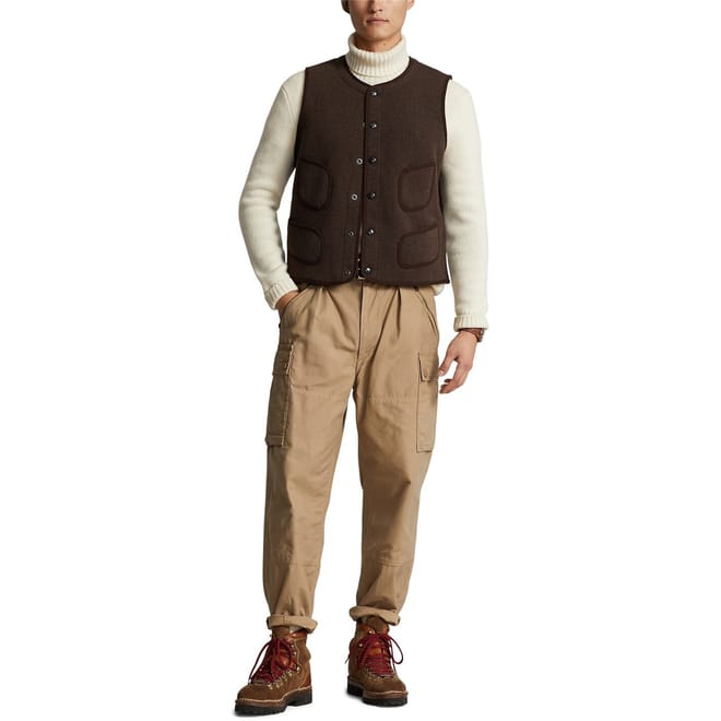 Discover the Polo Ralph Lauren gilet, a sleeveless knit vest designed in a solid pattern. This short jacket offers a regular fit, featuring a button closure and practical pockets. The vest embodies a classic style, combining functionality with a timeless aesthetic. -