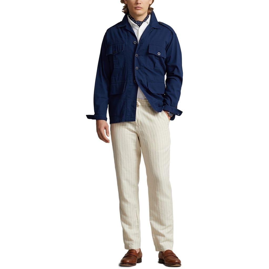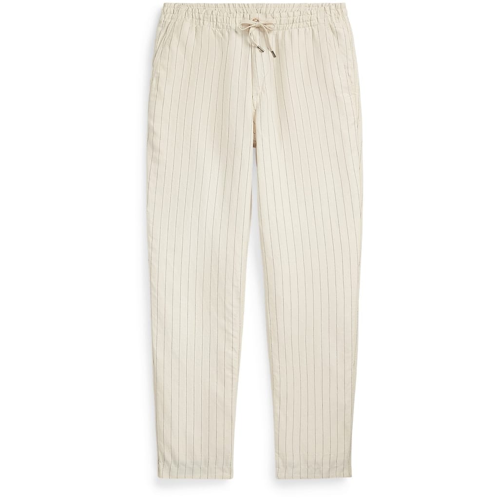 Elevate your wardrobe with Polo Ralph Lauren's chinos, perfect for both casual and workwear settings. These pants feature a regular fit and a stylish vertical stripe pattern, adding a touch of sophistication to your look. The drawstring closure ensures a comfortable fit, while the pocket embellishments provide practicality. -