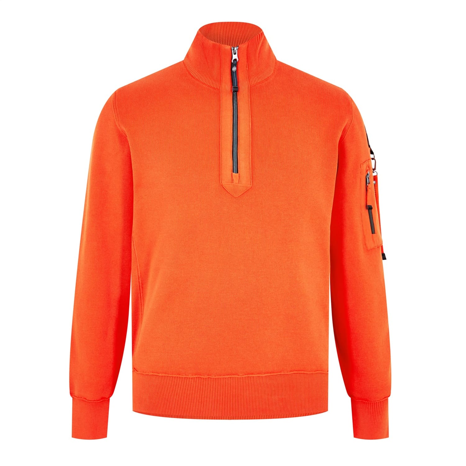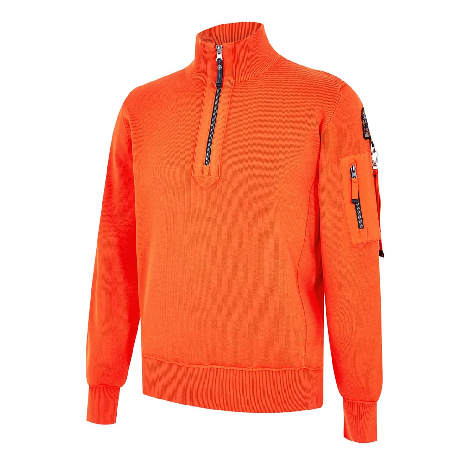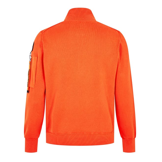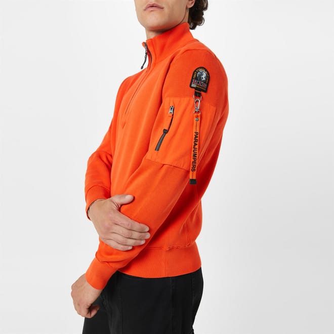 Inject colour and style into your wardrobe with this stylish Quarter Length Zipped Fleece from Parajumpers. Crafted in a premium blend of cotton and viscose this top comes in a regular fitting long sleeved design. It boasts a ribbed stand up collar, ribbing to the hem and cuffs allowing for a more comforting wear. To fasten there is a quarter length zip with stylish branded zipper. To the left arm there is a singular zipped pocket which offers room for the essentials wherever your day takes you. The look is finished in a solid block orange colouring and completed with with the iconic logo patch to the arm and detachable decorative clip which enables instant brand recognition and appreciation.