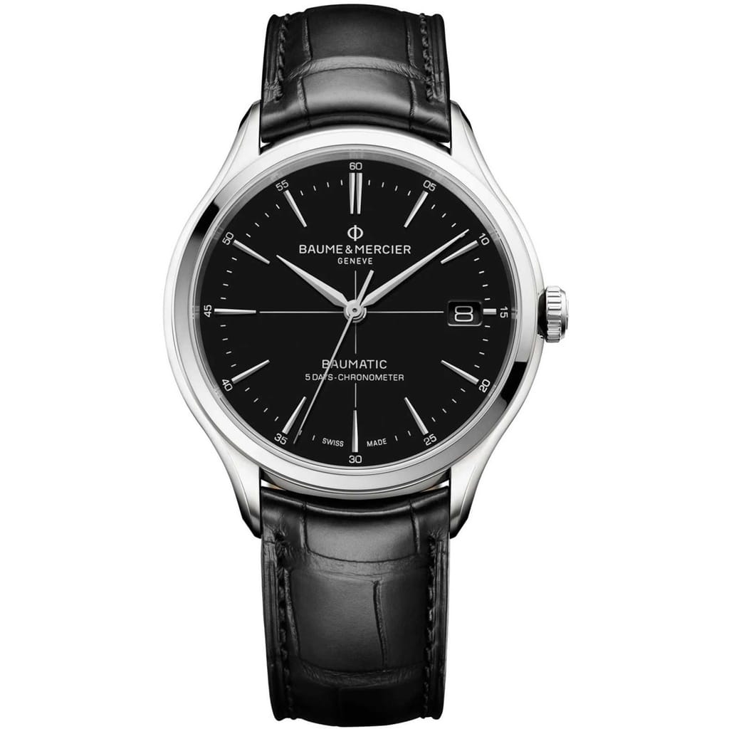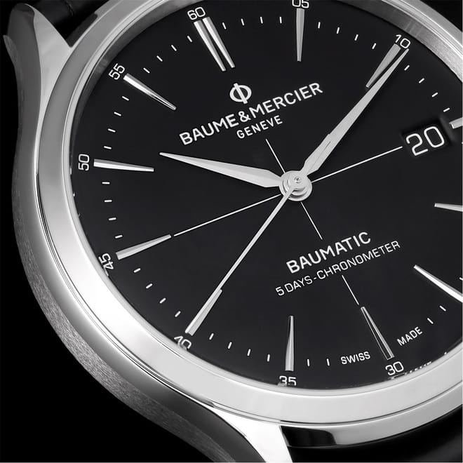 - Crafted with precision, this men's wristwatch is water resistant to a depth of 50 meters, ensuring it remains a reliable companion regardless of your adventures. The contrasting face, adorned with Baume & Mercier branding, serves as a distinctive hallmark of luxury and designer recognition. Whether attending an important business meeting or looking to elevate your day-to-day collection, Baume & Mercier's Clifton Watch is the perfect addition to any look.