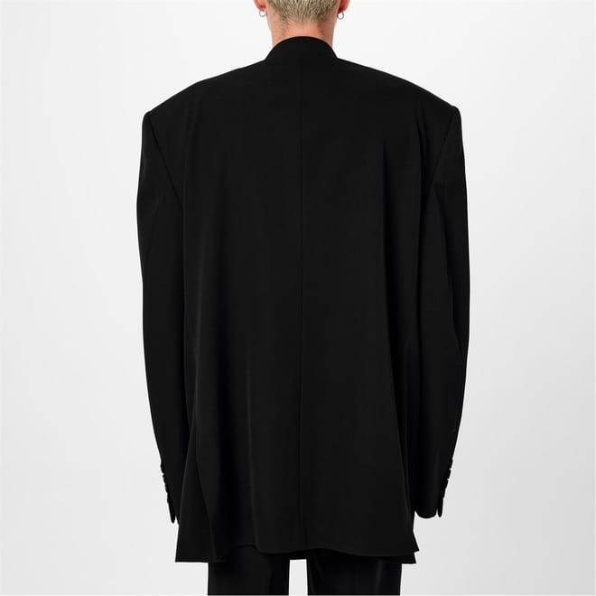Balenciaga introduces the Oversized Double Breasted Blazer, a classic style with a contemporary twist that demands attention. Known for its avant-garde designs and subversive take on fashion, the iconic label brings its expertise to bear with this men's jacket, meticulously crafted in luxurious virgin wool and cut in an oversized fit- this piece is framed by full-length sleeves with buttoned cuffs, and peak lapels on the collar reference classic tailoring codes, ensuring that you will look effortlessly sophisticated wherever you are.