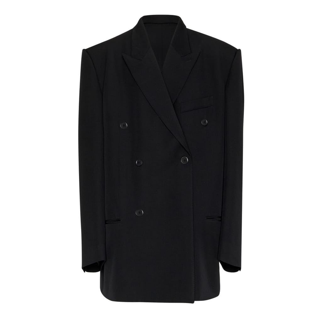- Double breasted button closures down the front are flanked by a discreet breast pocket and two welt pockets, providing ample space for everyday essentials like a smartphone or cardholder. Solid block colour delivers an exceptional foundation to style this gentlemen's wool blazer into any ensemble, making it a versatile design you will want to wear time after time. Inside, Balenciaga branding offers instant luxe appreciation and recognition.< -