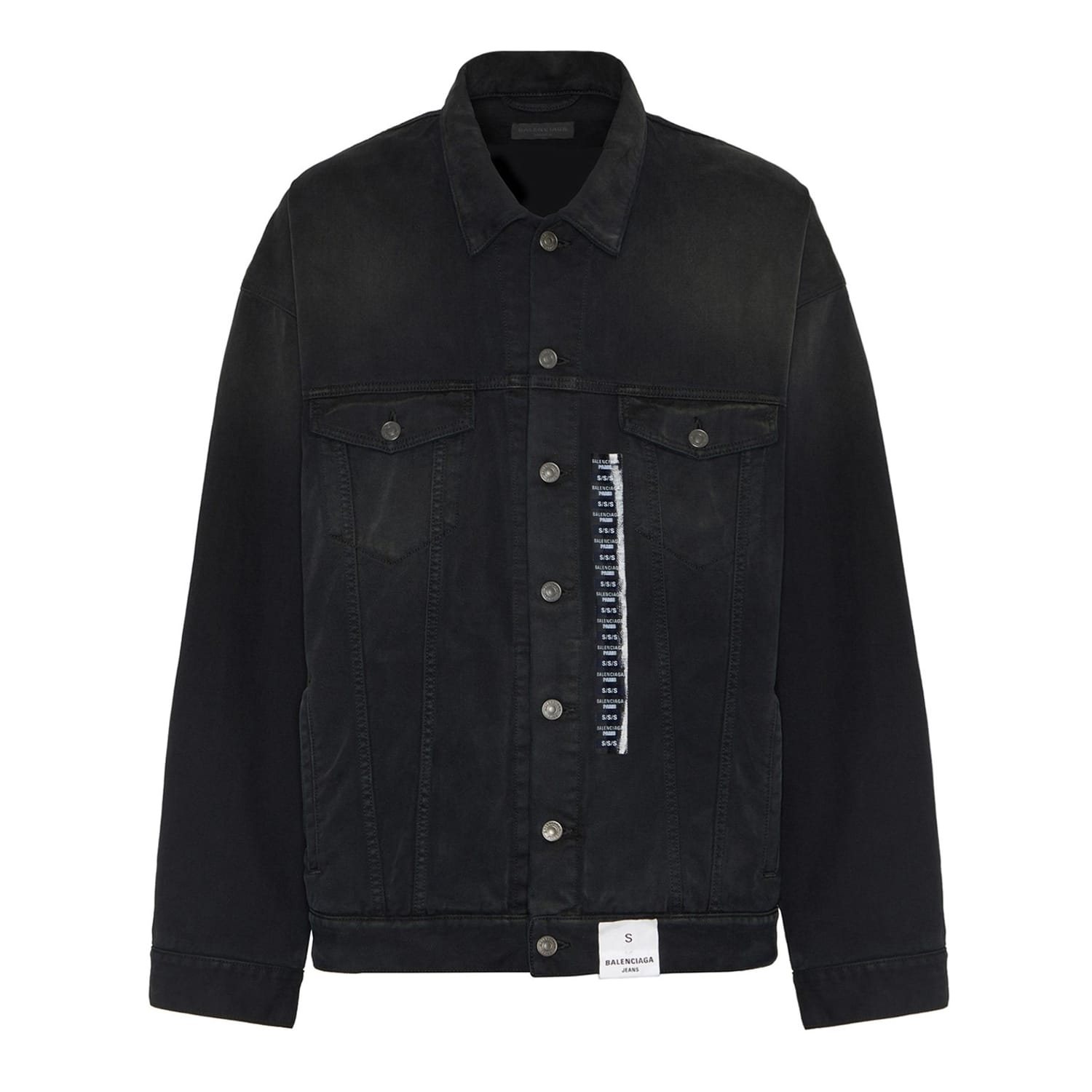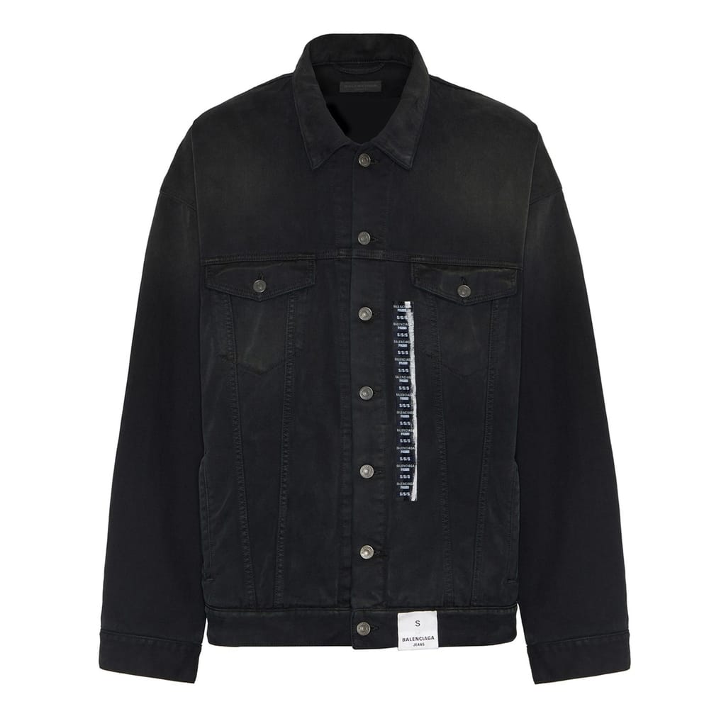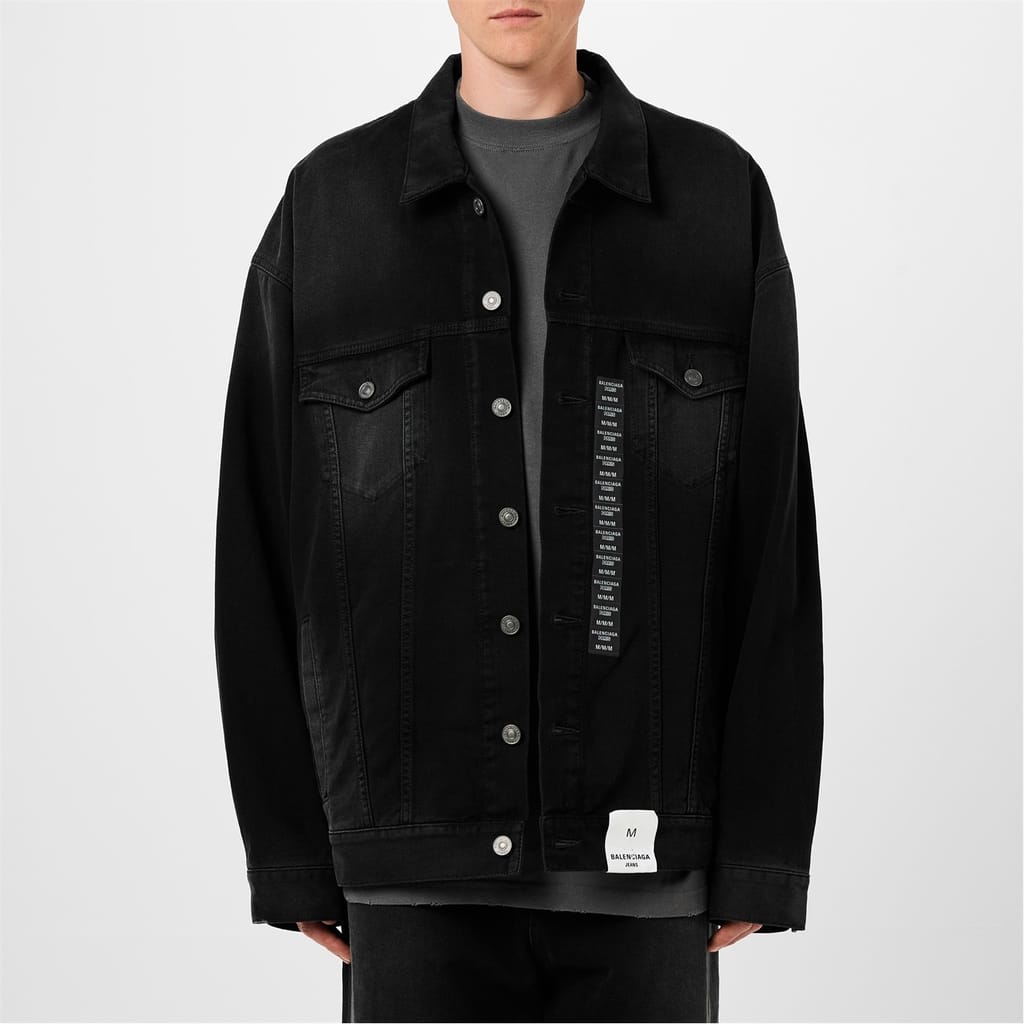 Presenting Balenciaga's Size Sticker Denim Jacket – a luxurious and contemporary piece that embodies the labels' peerless craftsmanship, innovation, and modernity. Fashioned in premium cotton denim with a left-hand twill; this piece has a soft texture. The oversized silhouette speaks to the house's streetwear-inspired codes, and the foldover collar adds a touch of casual sophistication. The full-length sleeves with buttoned cuffs and adjustable tabs on the waist provide versatility and is customisable.