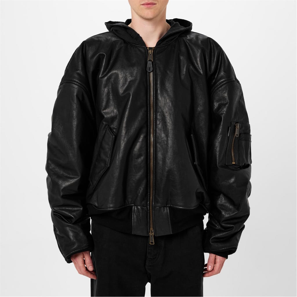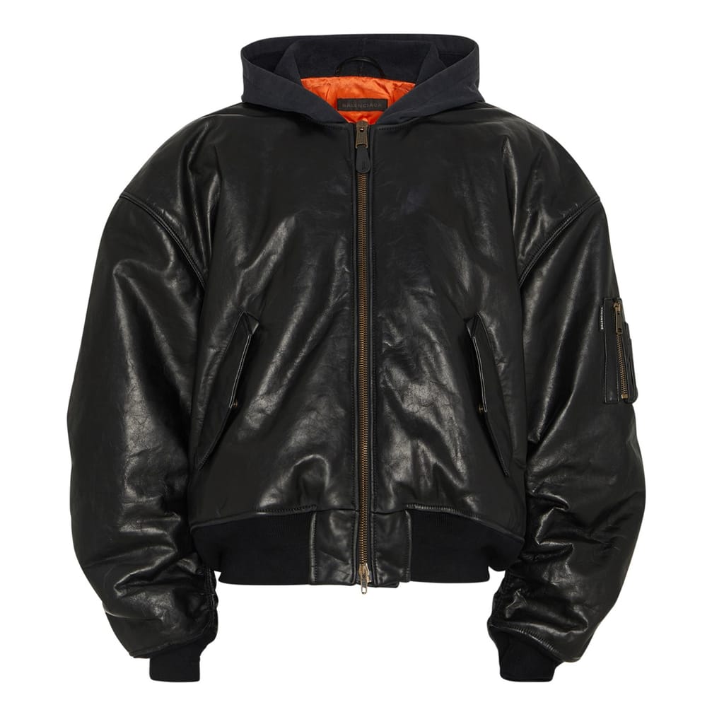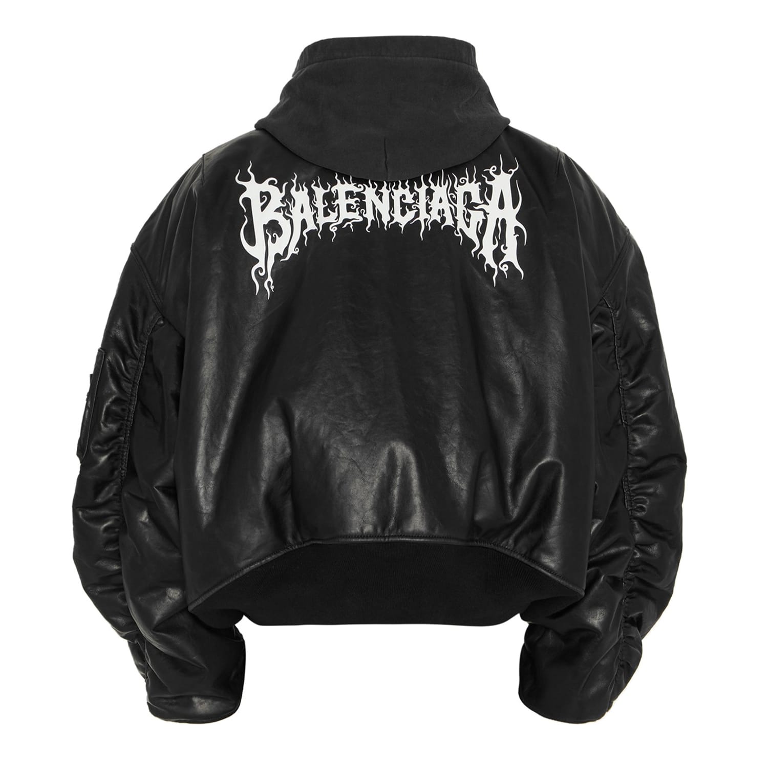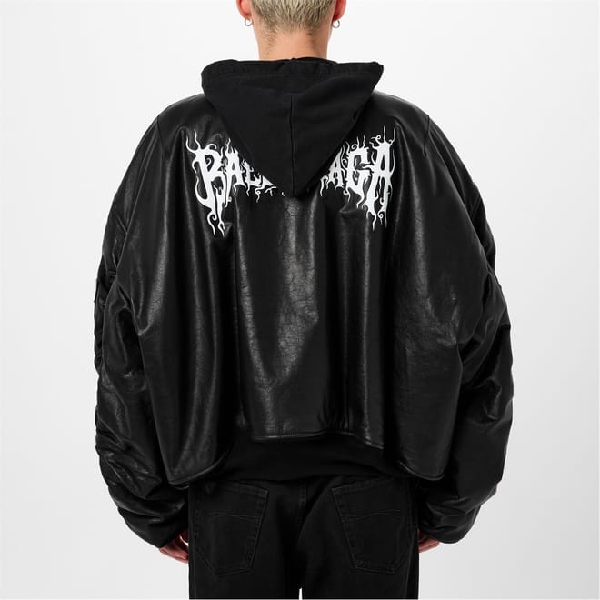 - Solid block colouring delivers an exceptional foundation to style this men's oversized bomber jacket into any ensemble. No Balenciaga design is complete without its signature tab on the left sleeve and its DIY Metal logo on the rear to ensure instant brand recognition and high-end appeal. Whether meeting friends for a drink or wrapping up in unpredictable weather, the DIY Metal Outline Hooded Bomber is the perfect option.