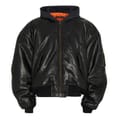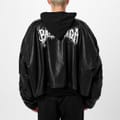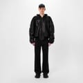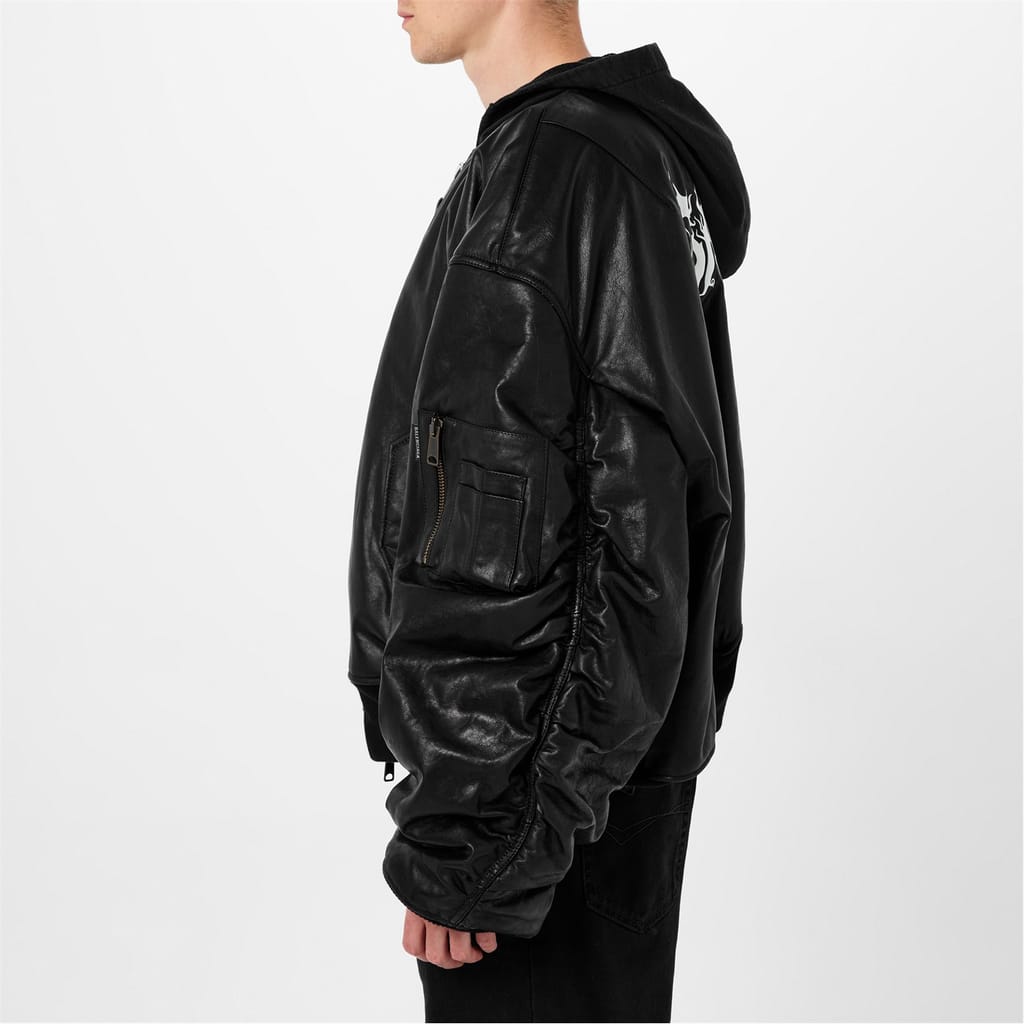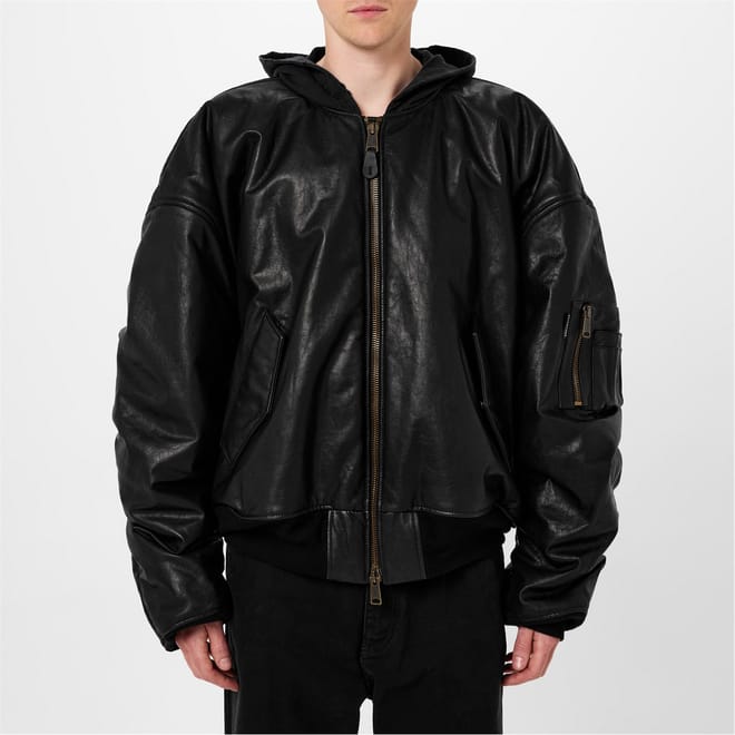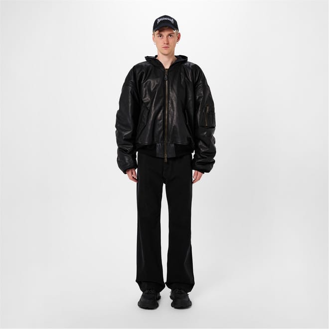 Acclaimed for its oversized silhouettes and street-inspired designs, Balenciag introduces the DIY Metal Outline Hooded Bomber. Impeccably crafted in the finest bullskin and fleece and cut for a large fit, this men's leather jacket showcases a washed-effect hood framed by dropped shoulders and full-length to provide exceptional coverage. A double-ended zip fastening ensures easy and convenient wear and is flanked by two flap pockets on the front and a cargo pocket on the left sleeve.