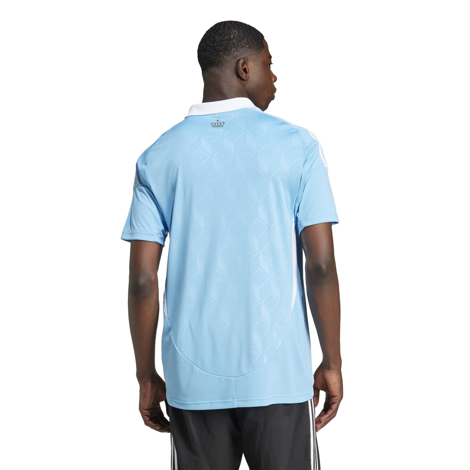 Get ready to show your support for the Belgian Red Devils with the adidas Belgium Away Shirt 2024. Drawing inspiration from Belgium's rich comic book culture, this jersey adds a vibrant and dynamic twist to your game. Crafted from 100% recycled polyester interlock, it not only provides a comfortable fit, but it also showcases adidas' commitment to sustainability. Designed with a slim fit silhouette, this shirt features short sleeves and one-button ribbed polo collar, providing a sleek and modern look. Equipped with AEROREADY technology and mesh inserts on the sides and sleeves, this shirt ensures optimal breathability and moisture management, keeping you cool and dry even during intense matches.