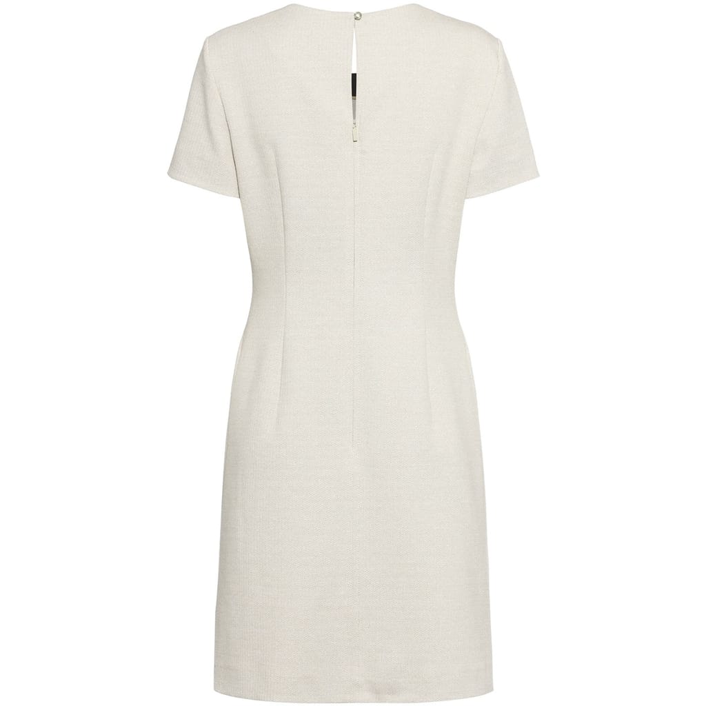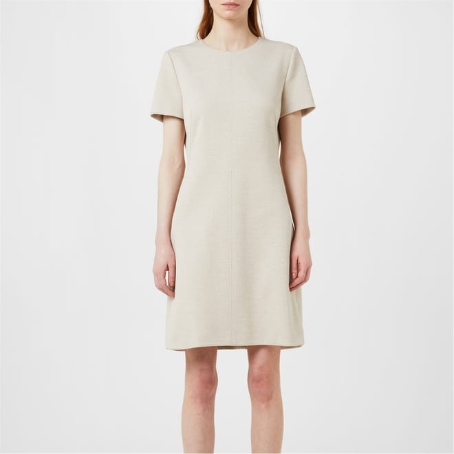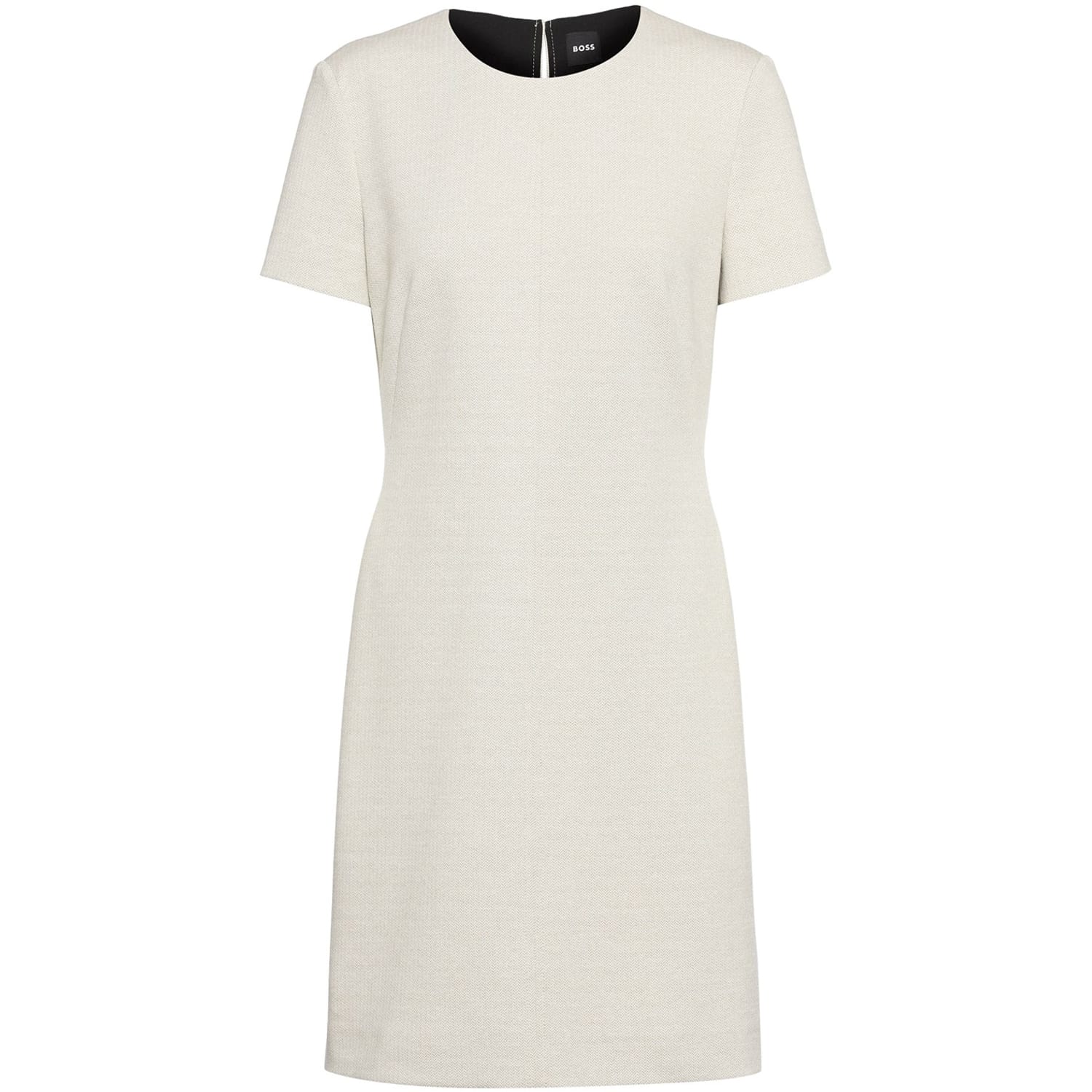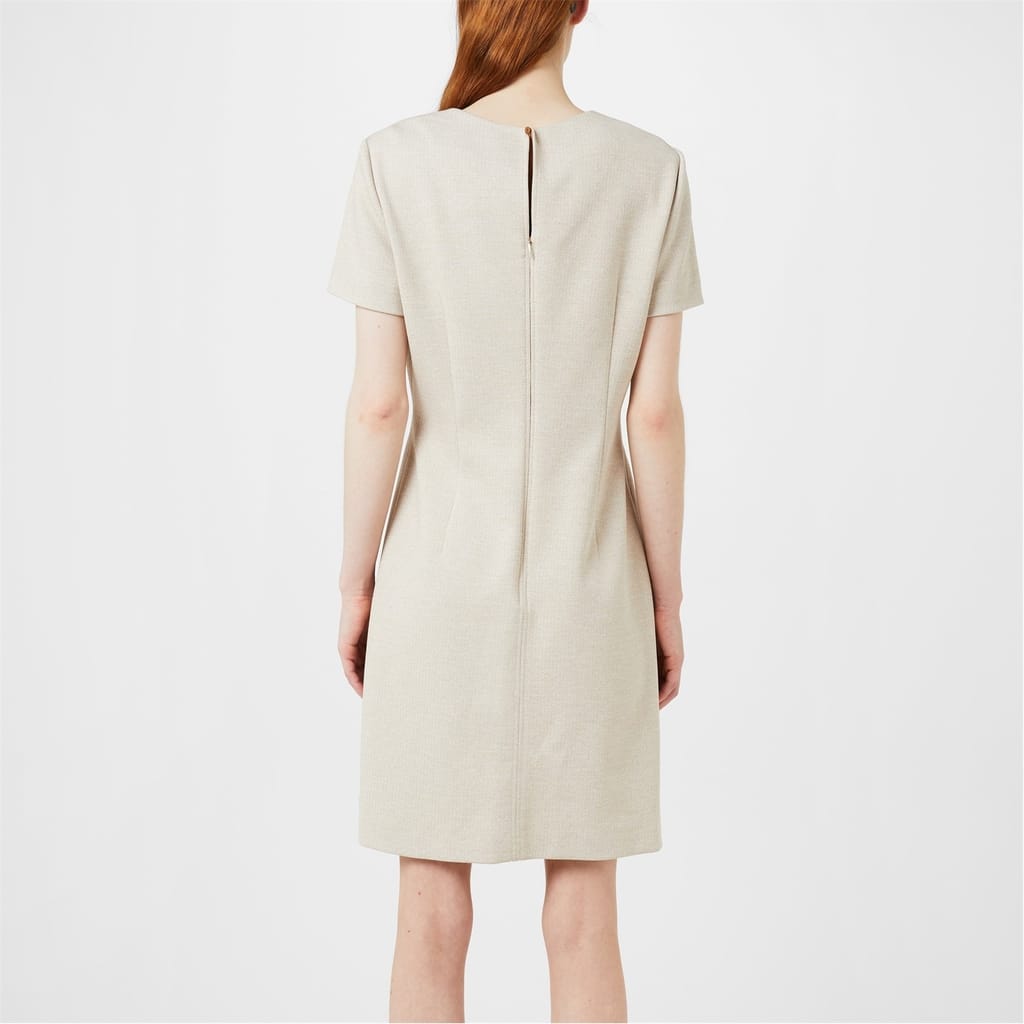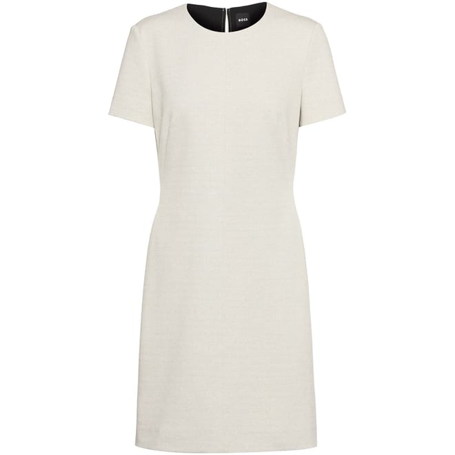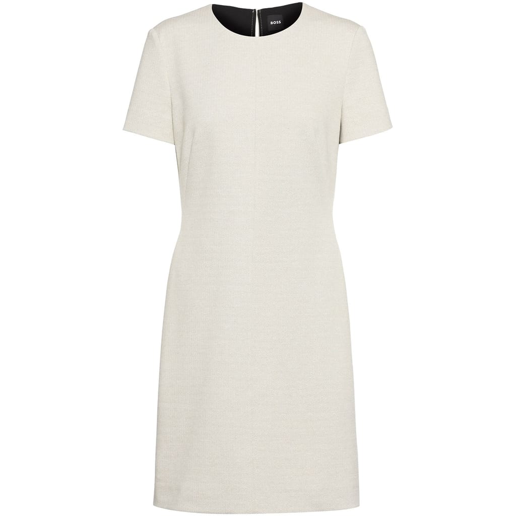 - The classic crew neckline and refined zip closure with a button fastening to the back exude understated sophistication, allowing for a seamless and flattering look. The versatility of the short-sleeved, plain design makes the Donalara Dress a go-to piece for various occasions, from casual daytime outings to sophisticated evening events. Its understated elegance embodies the essence of accessible luxury, making it an essential addition to any fashion-forward individual's wardrobe.