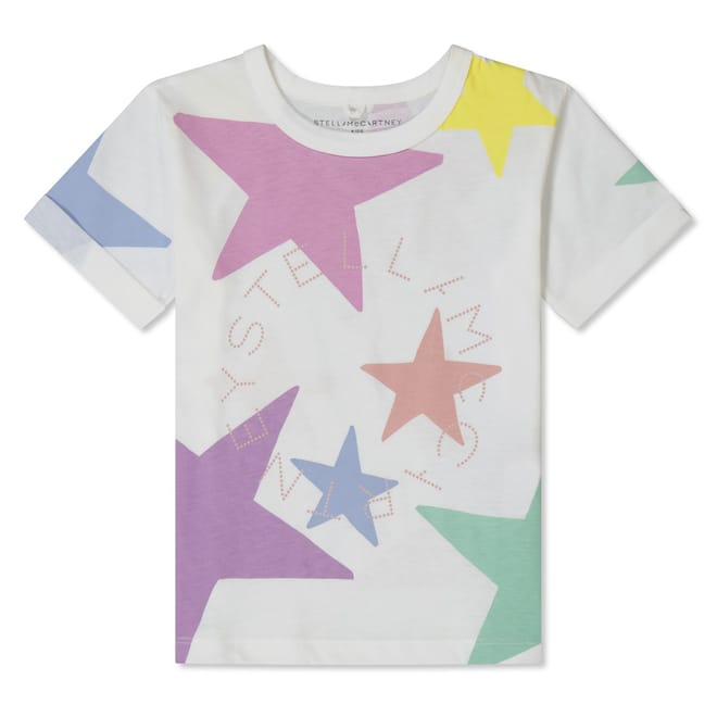 Treat your little one to their first taste of luxury with the Star Logo T-Shirt, brought to you by famed eco-conscious designer Stella McCartney. Adroitly crafted in lightweight cotton jersey, this colourful piece features a traditional ribbed crew neckline, short sleeves, a straight hem, and tone-on-tone stitching. The designer's staple all-over star print defines the look, and McCartney's signature logo embellishes the chest and ensures instant luxury appreciation. Primary fabric: 100% cotton; Trim: 96% cotton, 4% elastane. Machine wash at 30 degrees.