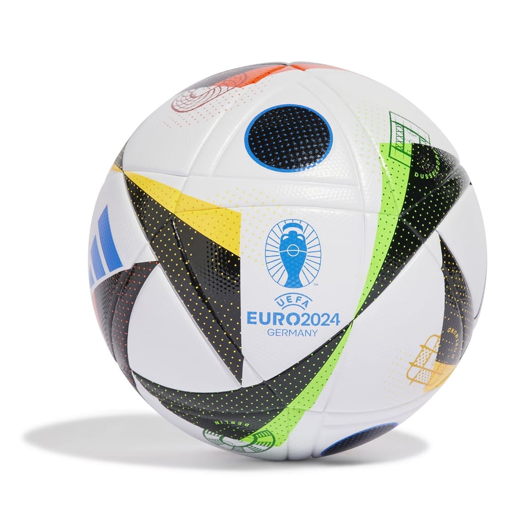 Step onto the field with passion and precision with the Adidas Euro 2024™ Football, also known as Fussballliebe - a ball that signifies the love and excitement that the sport ignites within its fans. Inspired by the panel structure of the 2022 Al Rihla World Cup ball, this ball features a unique deboss structure that's engineered for unparalleled accuracy and control during gameplay, making it a go-to choice for both training and matches. The ball's design is a colourful representation of the 24 participating nations of Euro 2024™, creating a visually stunning aesthetic that'll take your game to the next level. With its FIFA Quality certification, you can trust that the Adidas Euro 2024™ Football delivers best-in-class performance on grass surfaces. Whether you're a seasoned pro or a newbie enthusiast, this ball is your perfect partner in crime as you strive for excellence on the field. -