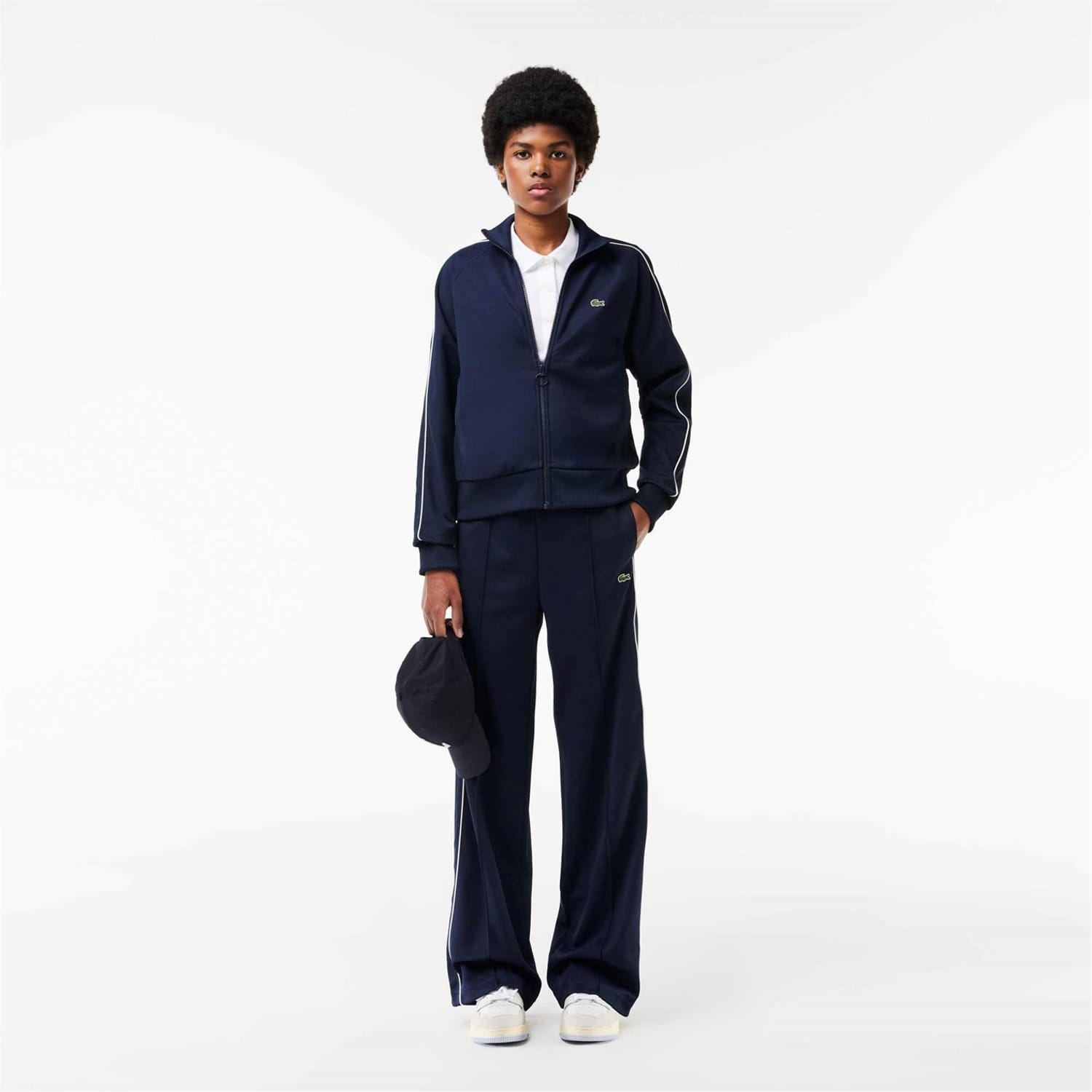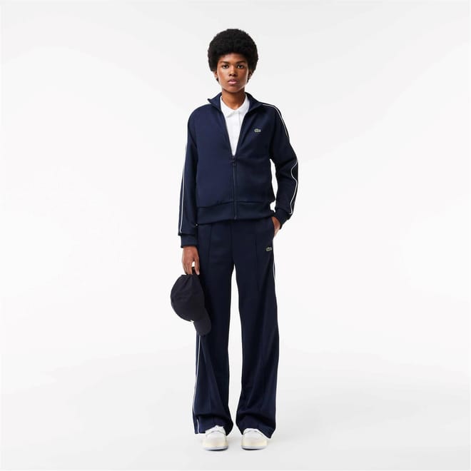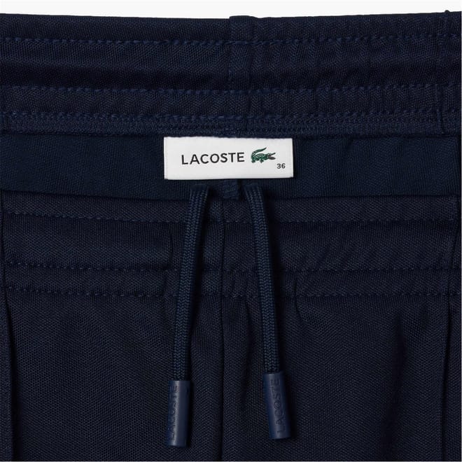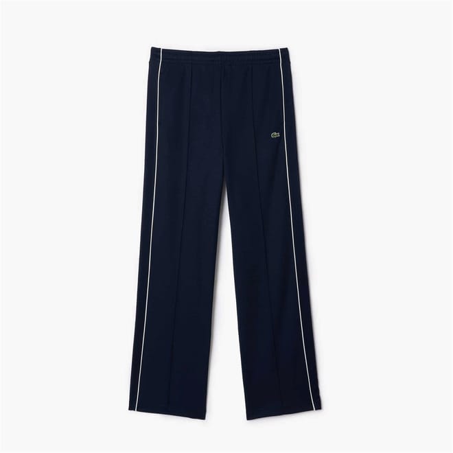 - Designed in a navy hue adorned with white piping down the sides of the legs offering a refined appeal, while the iconic silicone crocodile is proudly placed on the front, showcasing an authentic feature. Whether having a casual day out or going for a leisurely stroll, the Lacoste Paris Interlock Track Pants are the perfect piece to elevate your everyday look.
