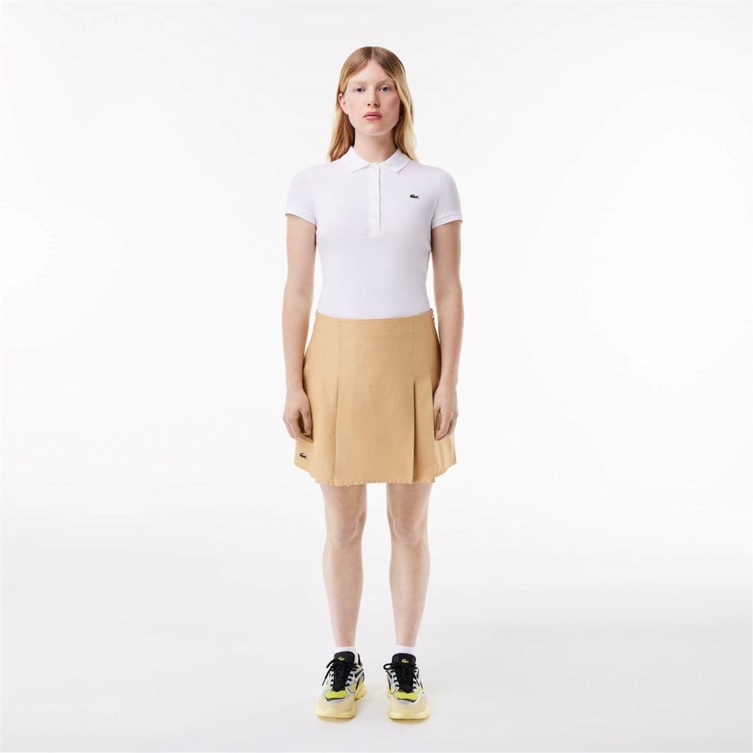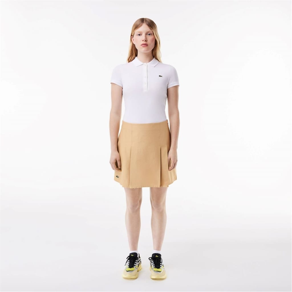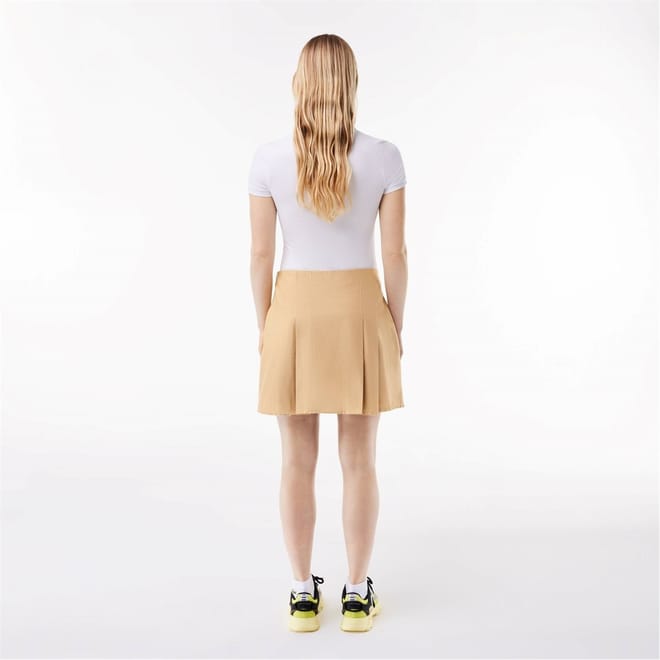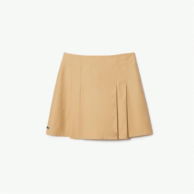 - Designed in a beige hue offering versatility, complete with the iconic sewn-on embroidered crocodile adding a distinctive feature. Whether you are attending a stylish garden party or taking a leisurely stroll, the Lacoste Short Pleated Skirt is the perfect piece to accompany you. Pair with a fitted t-shirt and trainers for a finished look.