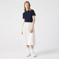 Exude elegance and sophistication in this Long skirt from Lacoste. Expertly made from 100% polyester, this skirt achieves a luxuriously lightweight that enhances your comfort with its soft touch and breathable feel. Featuring an elasticated waist for a comfortable fit this midi skirt captivates with its flowing hem and pleated detail. Designed in a classic colourway for ease of styling. -