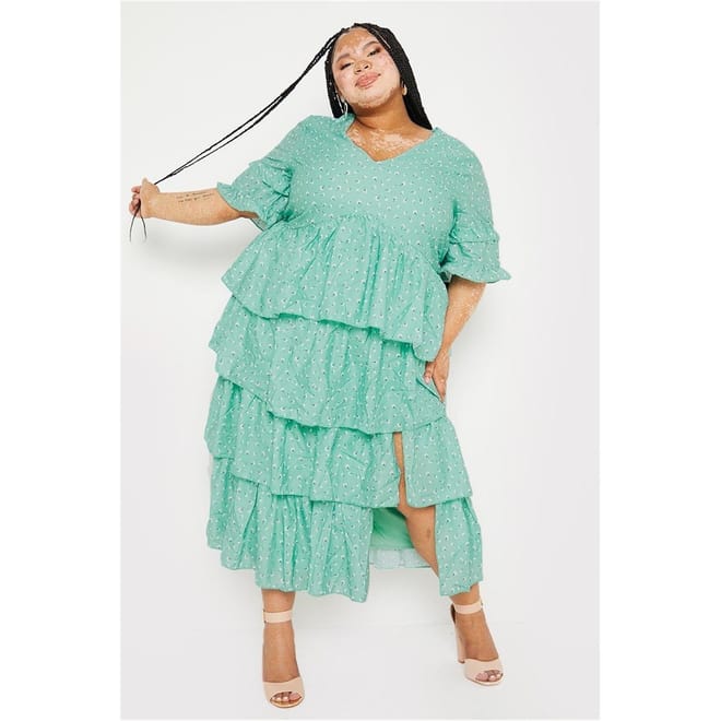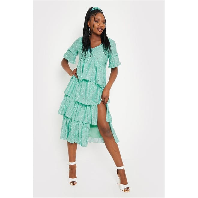 In a gorgeous sage colour with a beautiful floral print, this midi dress is a wardrobe staple for this season. Pair with sandals, sunglasses for the ultimate day time outfit.