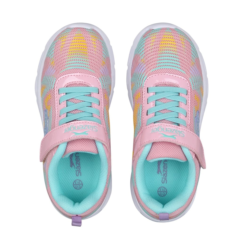 The Slazenger Alie 2.0 Child Trainers are perfect for everyday wear, crafted with a shaped ankle collar coupled with elasticated laces, a touch tape fastening and pull loop to the heel allows for an easy on and off as well as a secure fit. A lightweight moulded outsole with lightup detail coupled with colourful detail across the upper gives a stylish look, finished off with the classic Slazenger branding.