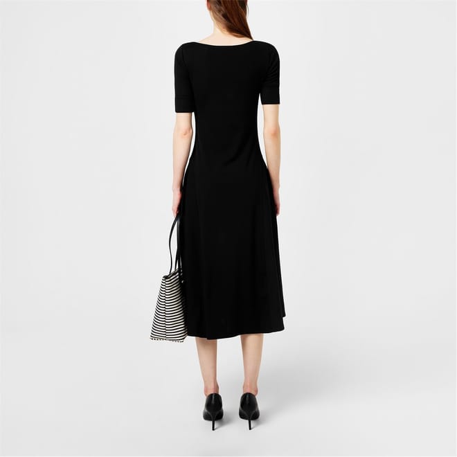 - Solid block colouring delivers an excellent foundation to style this midi dress into any ensemble.