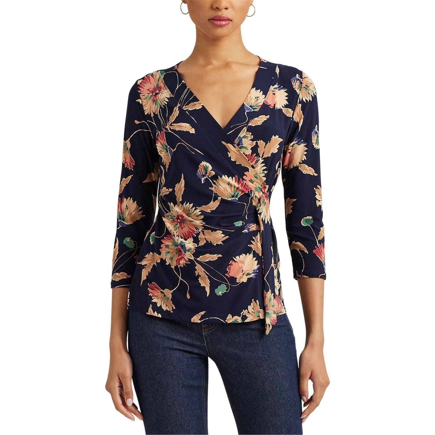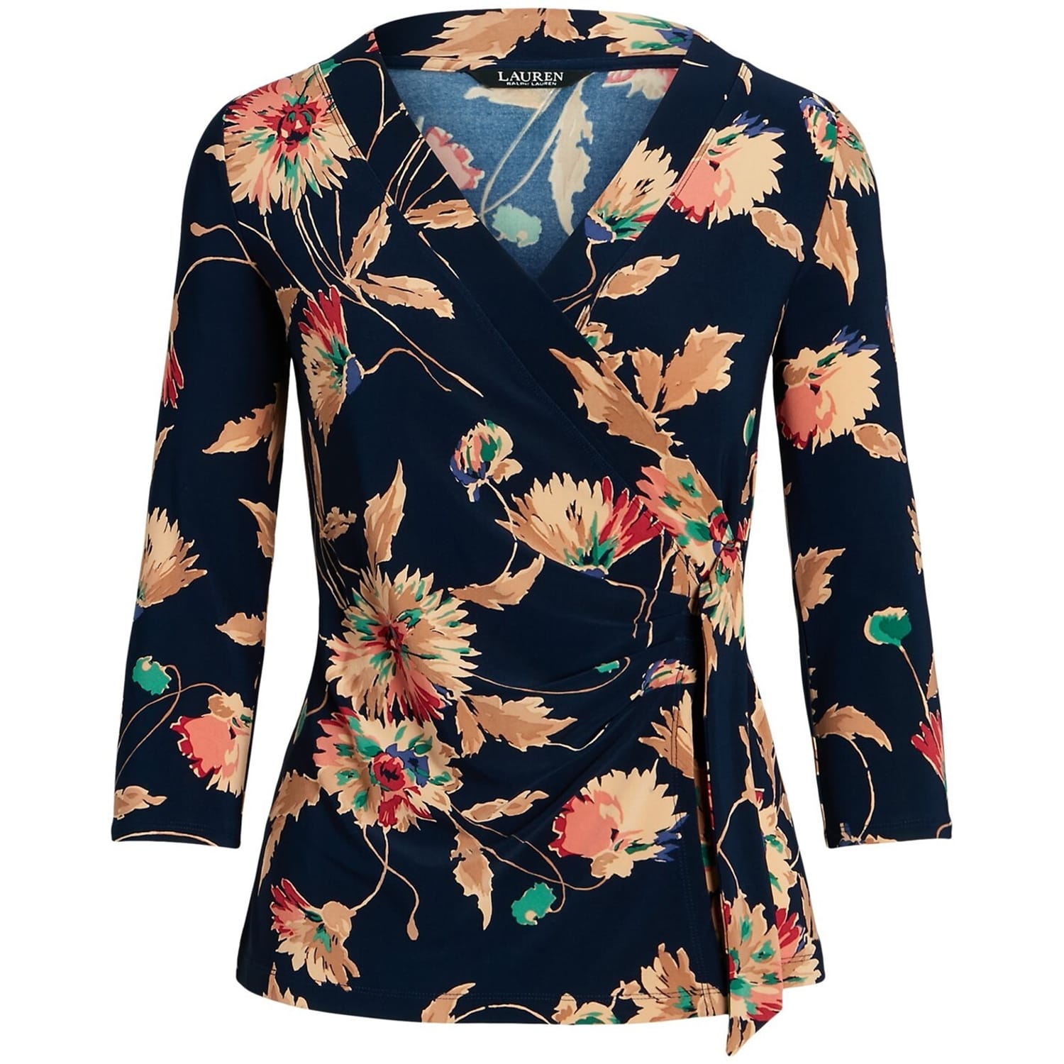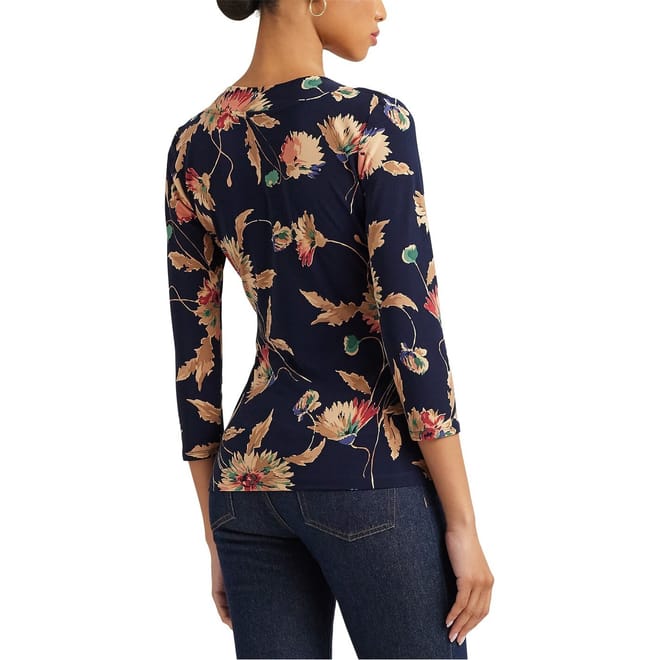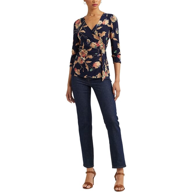Introducing the Lauren by Ralph Lauren Jainab Wrap Top, a versatile wardrobe staple that combines effortless style with comfort. Crafted from soft jersey fabric, this top features a faux-wrap design that flatters the figure and adds a touch of elegance. The ruching detail and the LRL-engraved D-ring on the left waist add subtle yet eye-catching accents, making it perfect for both casual and formal occasions. As it is refreshed for the season with a vibrant floral motif, this top effortlessly embraces the latest trends. The seamless stitch and lightweight material ensure a comfortable fit, allowing you to move with ease throughout the day. 95%25 polyester, 5%25 elastane. Machine washable, follow care instructions. -