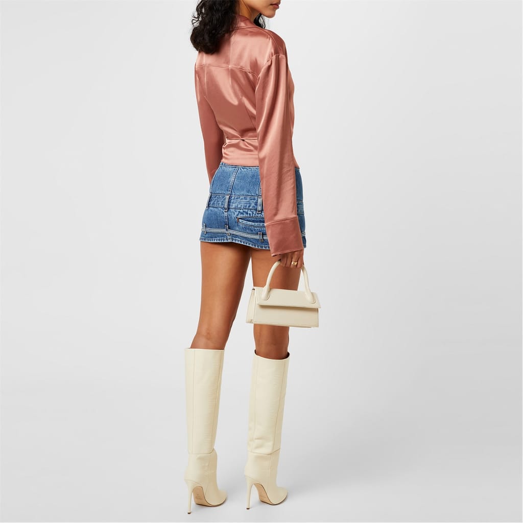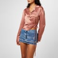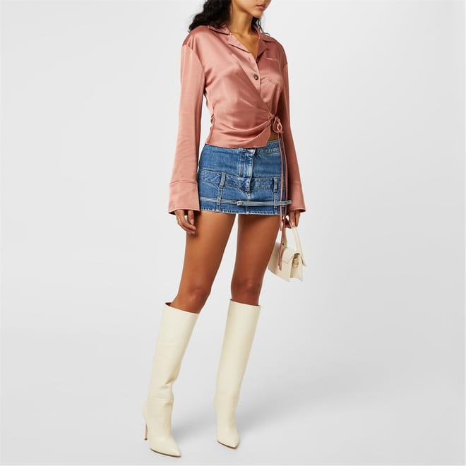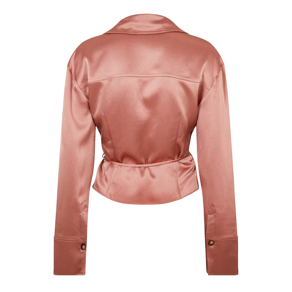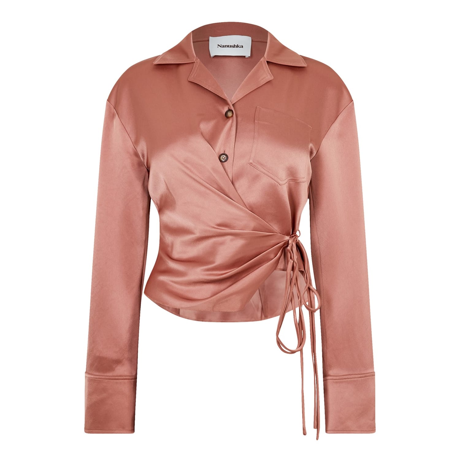 Discover the elegance of Nanushka's Barbie collection with this long sleeve, regular fit dress shirt. Featuring a tie front closure and a solid pattern, this shirt embodies timeless style and sophistication. -