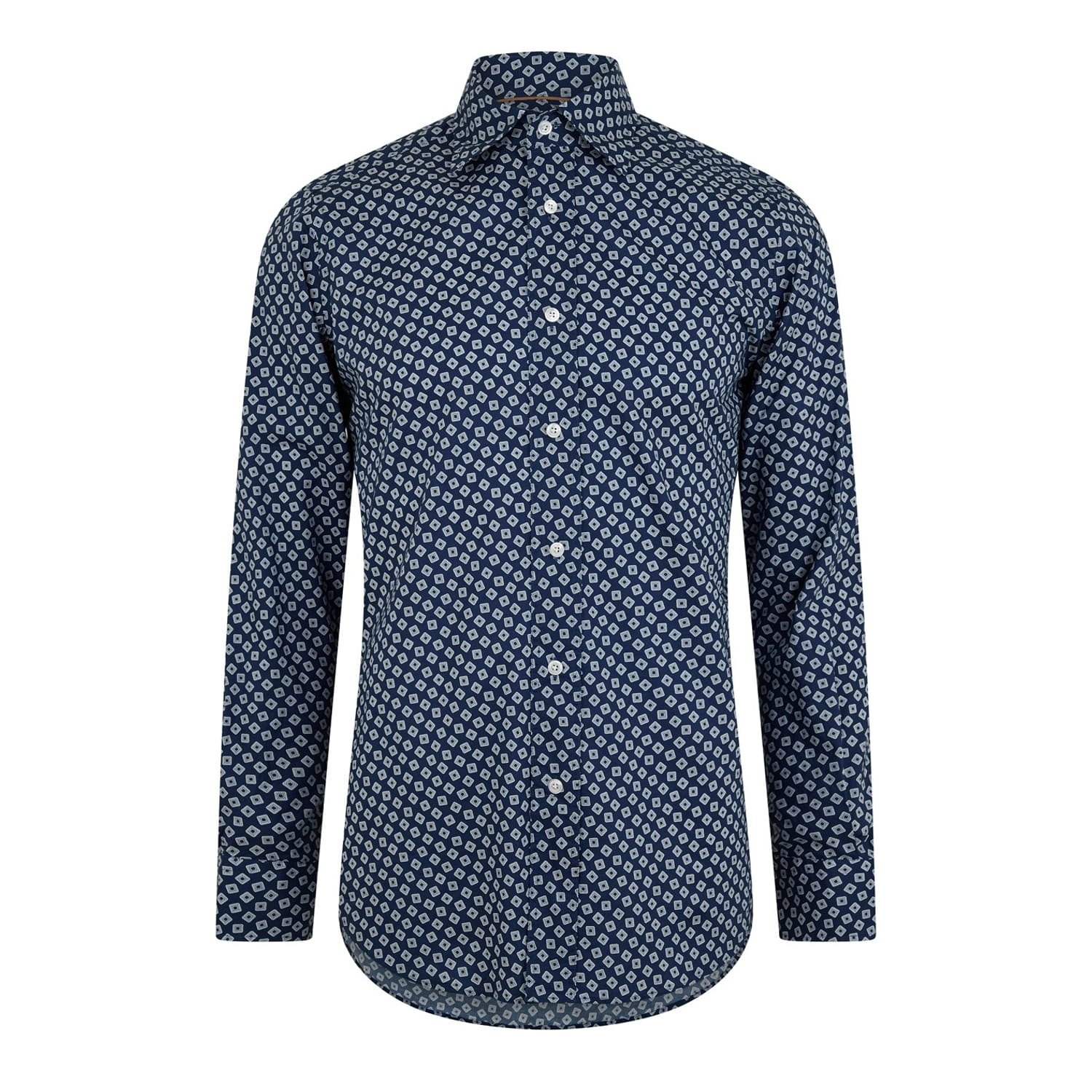 This BOSS dress shirt is a sophisticated addition to your wardrobe. Featuring a geometric pattern, its long sleeves and regular fit ensure a classic look and comfortable wear. The button closure adds a refined touch, making it perfect for both formal and semi-formal occasions. -