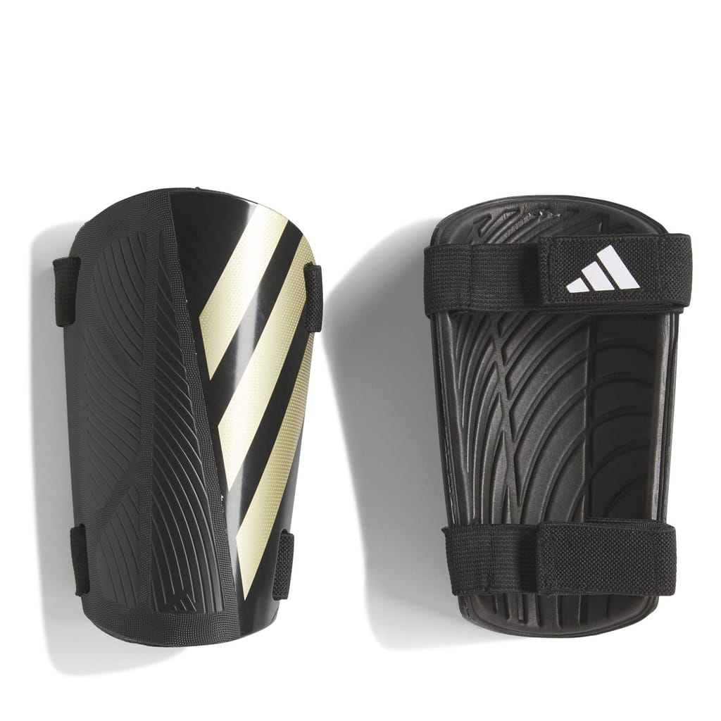 - Providing an enhanced fit, these shin guards have been anatomically designed to follow the natural contours of your lower leg, providing the utmost comfort as you are on the move. And let's not forget the iconic adidas 3-stripes on the front, showcasing adidas' unwavering dedication to the game. From fierce matches to relentless training sessions, the adidas Tiro Training Shin Guards are your ultimate companion to help you unleash your full potential. 100% polypropylene. Hand wash cold. -