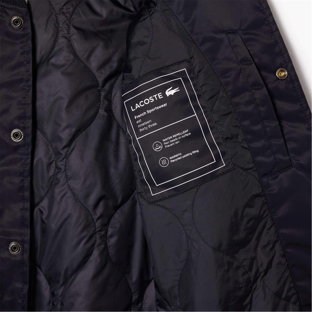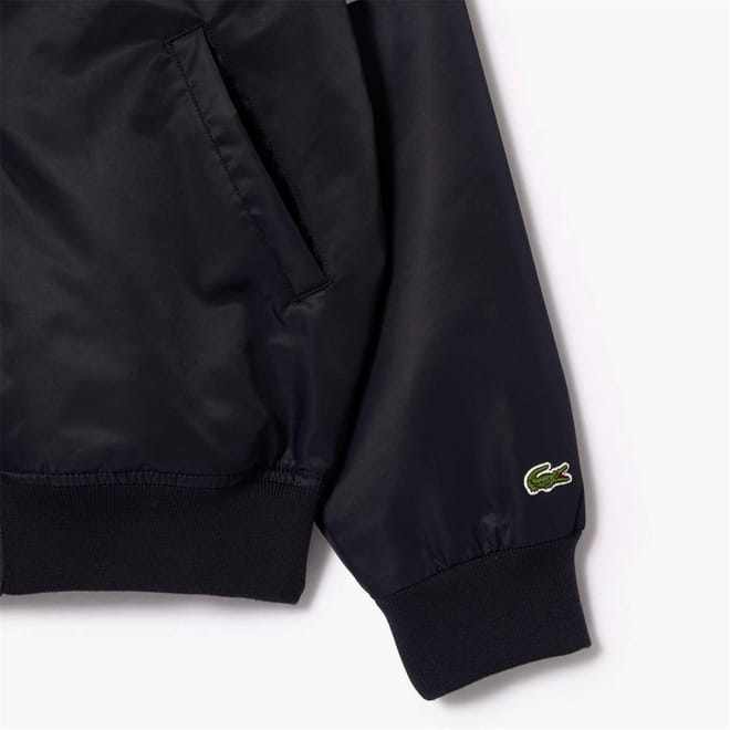 Introducing the Lacoste Bomber Jacket, a premium wardrobe staple that seamlessly combines style and functionality. Crafted using a sleek nylon exterior complemented by lightweight padding on the inside. The unique sleeve tipping detail adds a touch of modern elegance, while the snap buttons provide easy and convenient closure. Adorning the chest is the iconic Lacoste Crocodile Paris embroidery, showcasing the brand's timeless heritage. Offering two side pockets this jacket fuses fashion with function boasting a practical edge that allows you to keep your small essentials close and accessible. Designed for various occasions, from casual outings to stylish events, the Lacoste Bomber Jacket effortlessly elevates any ensemble. -