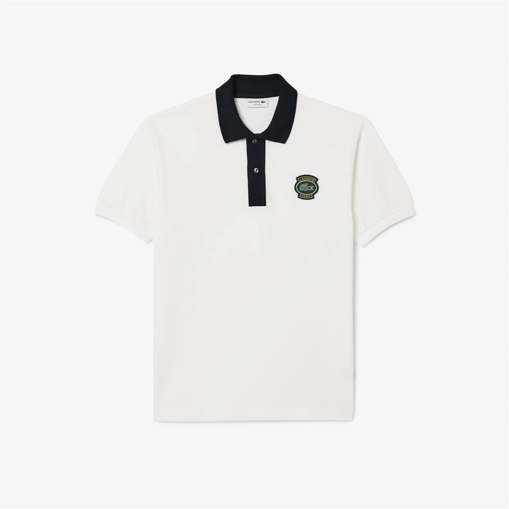 - Crafted from premium cotton, this regular-fit polo shirt offers a luxurious feel against the skin. The pointed collar and two-button placket embody classic sophistication, while the short sleeves and ribbed cuffs provide a casual and relaxed look. The colour block design adds a modern twist while the Lacoste logo badge, embroidered delicately on the chest, serves as a mark of authenticity and impeccable craftsmanship. Ideal for a range of occasions, from casual outings to weekend gatherings, this polo shirt exudes effortless style. Pair it with tailored trousers for a sophisticated ensemble or dress it down with jeans for a laid-back yet refined look.
