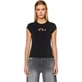 Embrace the effortlessly cool spirit of the early 2000s with the Diesel T-Angie Oval D T-shirt, a true nostalgic gem in the realm of high-end fashion. Gaining prominence for their high-rise denim and minimalistic designs, Diesel defined the grunge era. Continuing to live up to its rebellious and youthful aesthetic, the label has continued to capture the attention of luxury lovers around the globe, even being crowned the hottest brand of 2022.