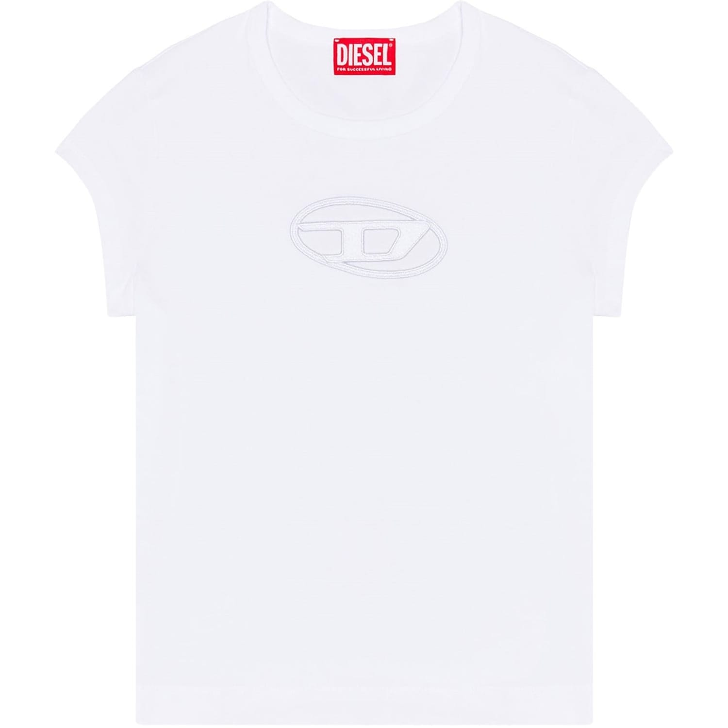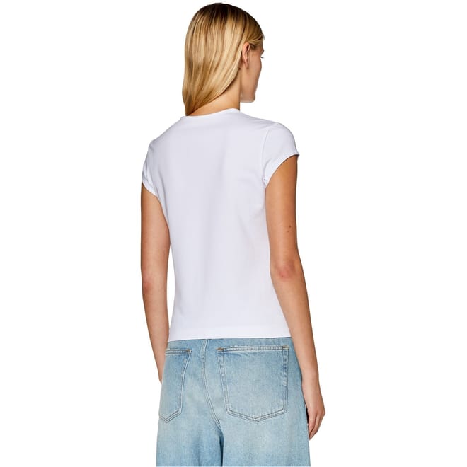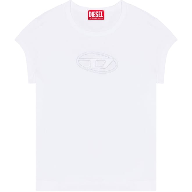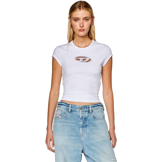 Embrace the effortlessly cool spirit of the early 2000s with the Diesel T-Angie Oval D T-shirt, a true nostalgic gem in the realm of high-end fashion. Gaining prominence for their high-rise denim and minimalistic designs, Diesel defined the grunge era. Continuing to live up to its rebellious and youthful aesthetic, the label has continued to capture the attention of luxury lovers around the globe, even being crowned the hottest brand of 2022.