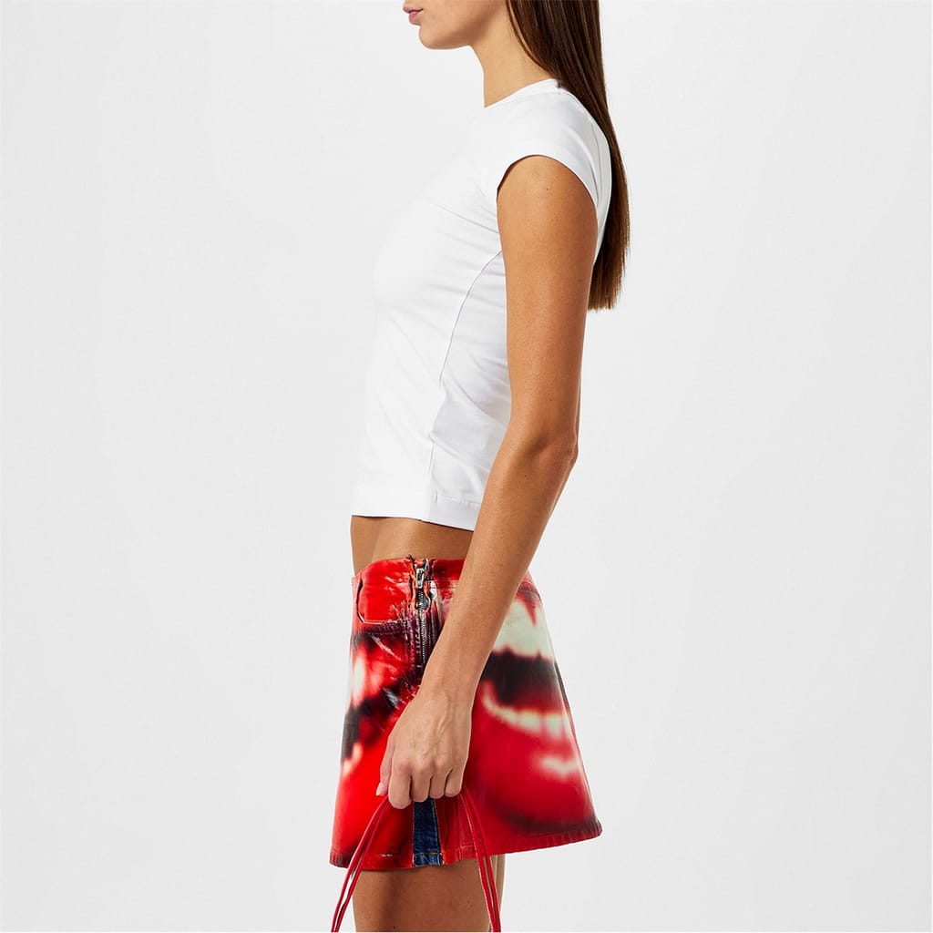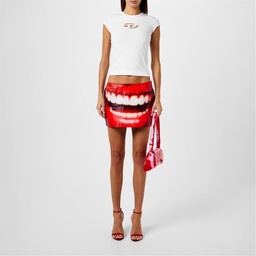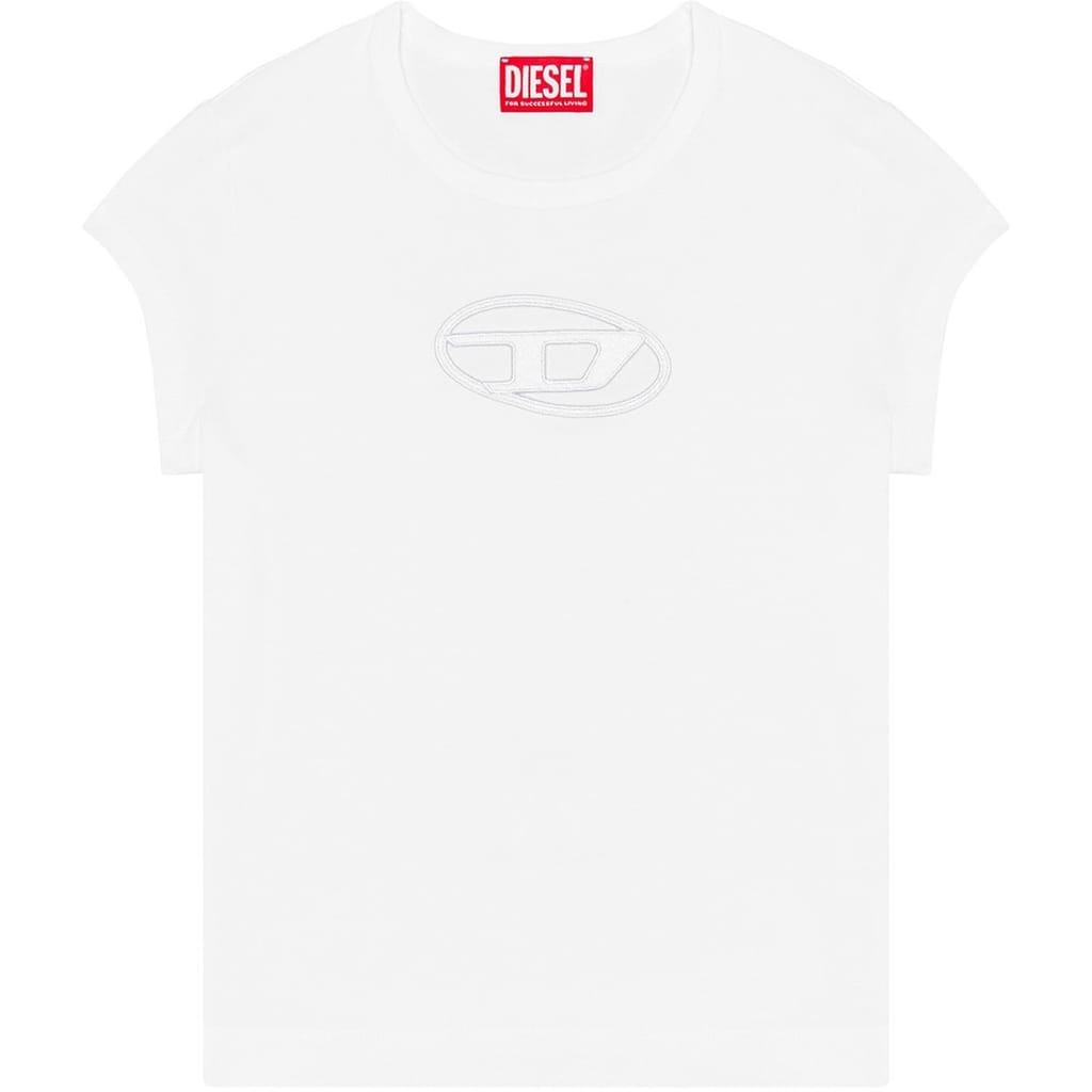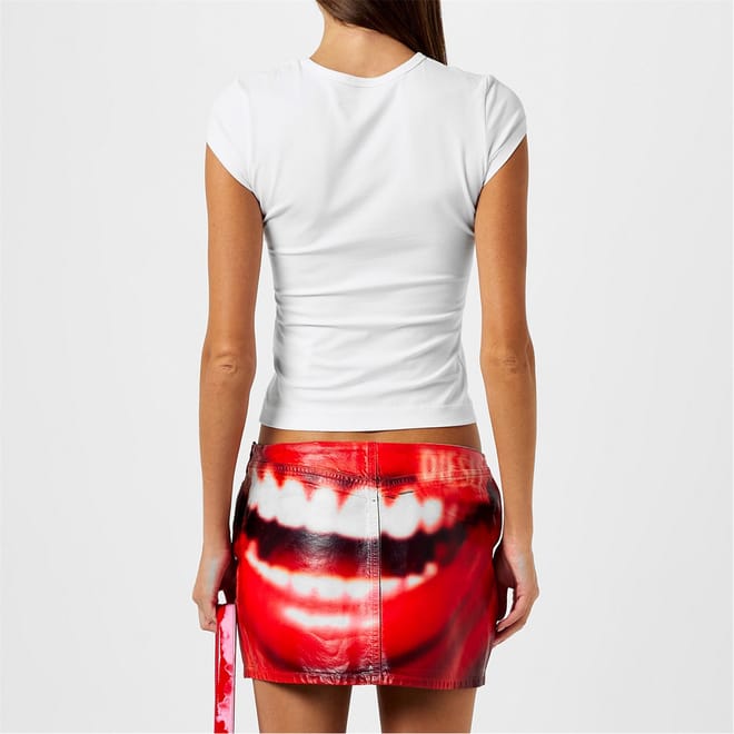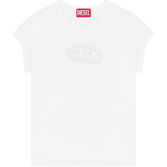 Embrace the effortlessly cool spirit of the early 2000s with the Diesel T-Angie Oval D T-shirt, a true nostalgic gem in the realm of high-end fashion. Gaining prominence for their high-rise denim and minimalistic designs, Diesel defined the grunge era. Continuing to live up to its rebellious and youthful aesthetic, the label has continued to capture the attention of luxury lovers around the globe, even being crowned the hottest brand of 2022.