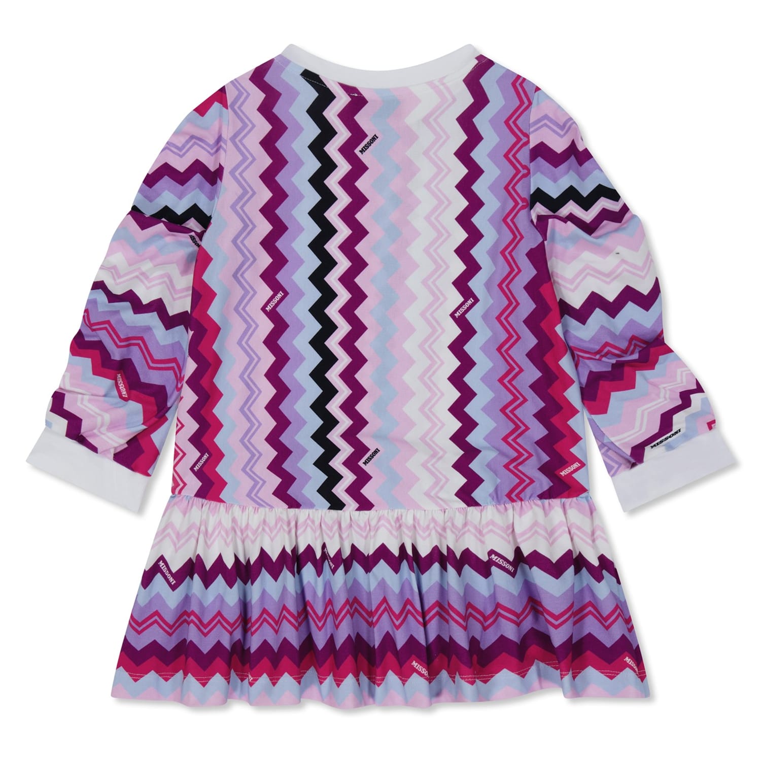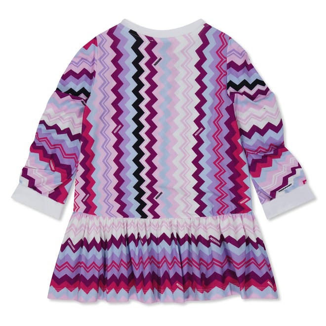 Spoil your little one to their first taste of luxury with this eye-catching Zig-Zag Dress from Missoni. Skilfully crafted in a stretch-cotton jersey, this striking midi-length piece features a ribbed crew neck, full-length sleeves with delicate ruched detailing, an elasticated peplum hem, contrasting ribbed trims, and tone-on-tone stitching. An all-over zig-zag print, a signature Missoni design, defines the look and subtle logos ensure instant brand recognition. Principal fabric: 90% cotton, 10% elastane; Trim: 100% cotton. Machine wash at 30 degrees.