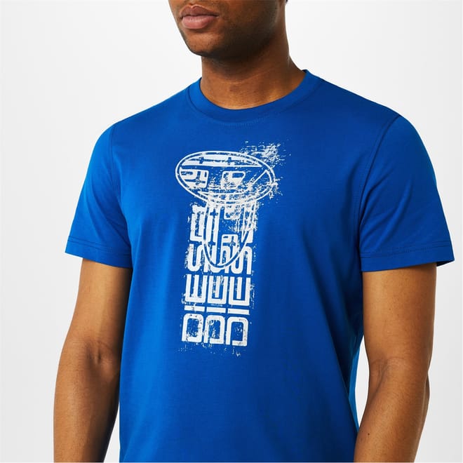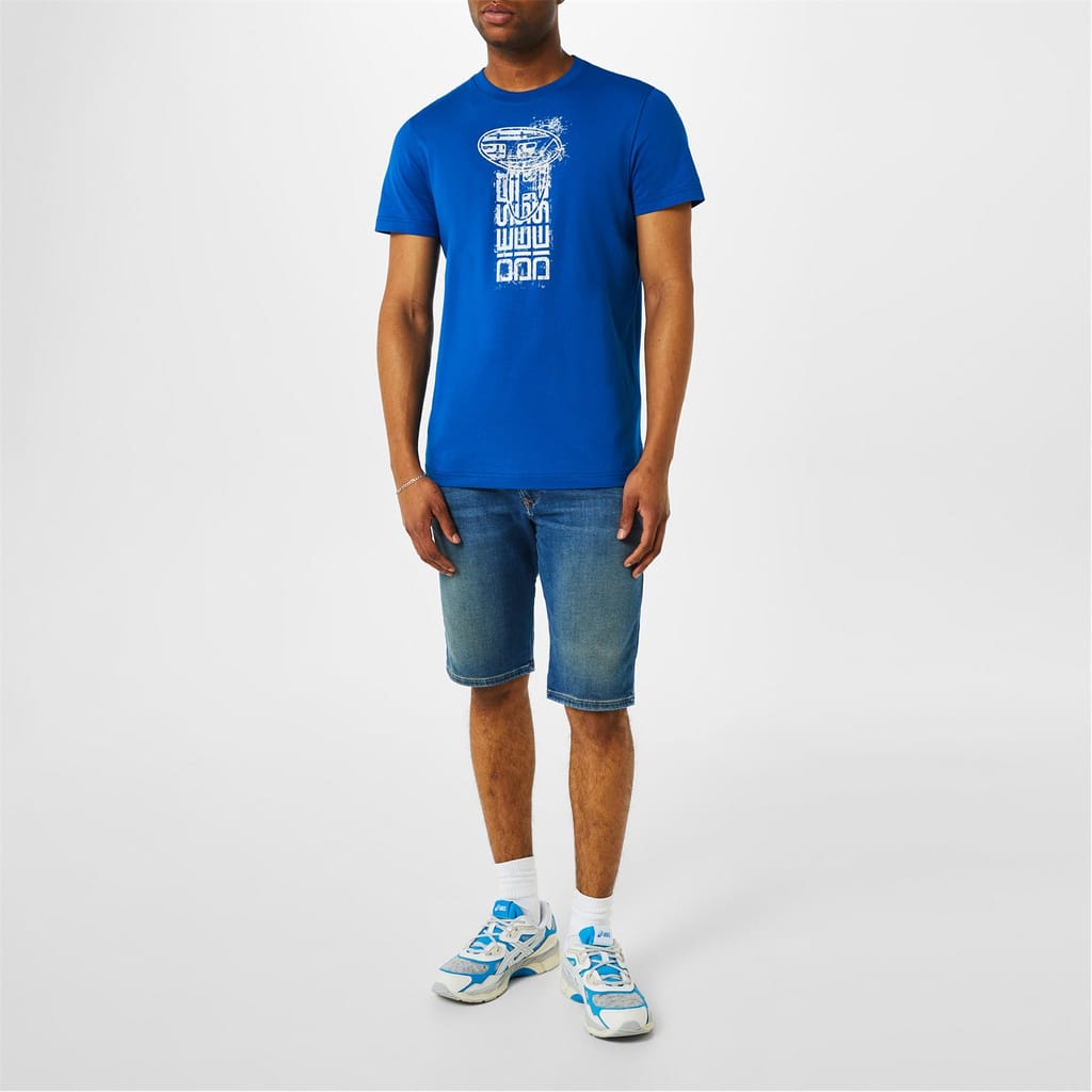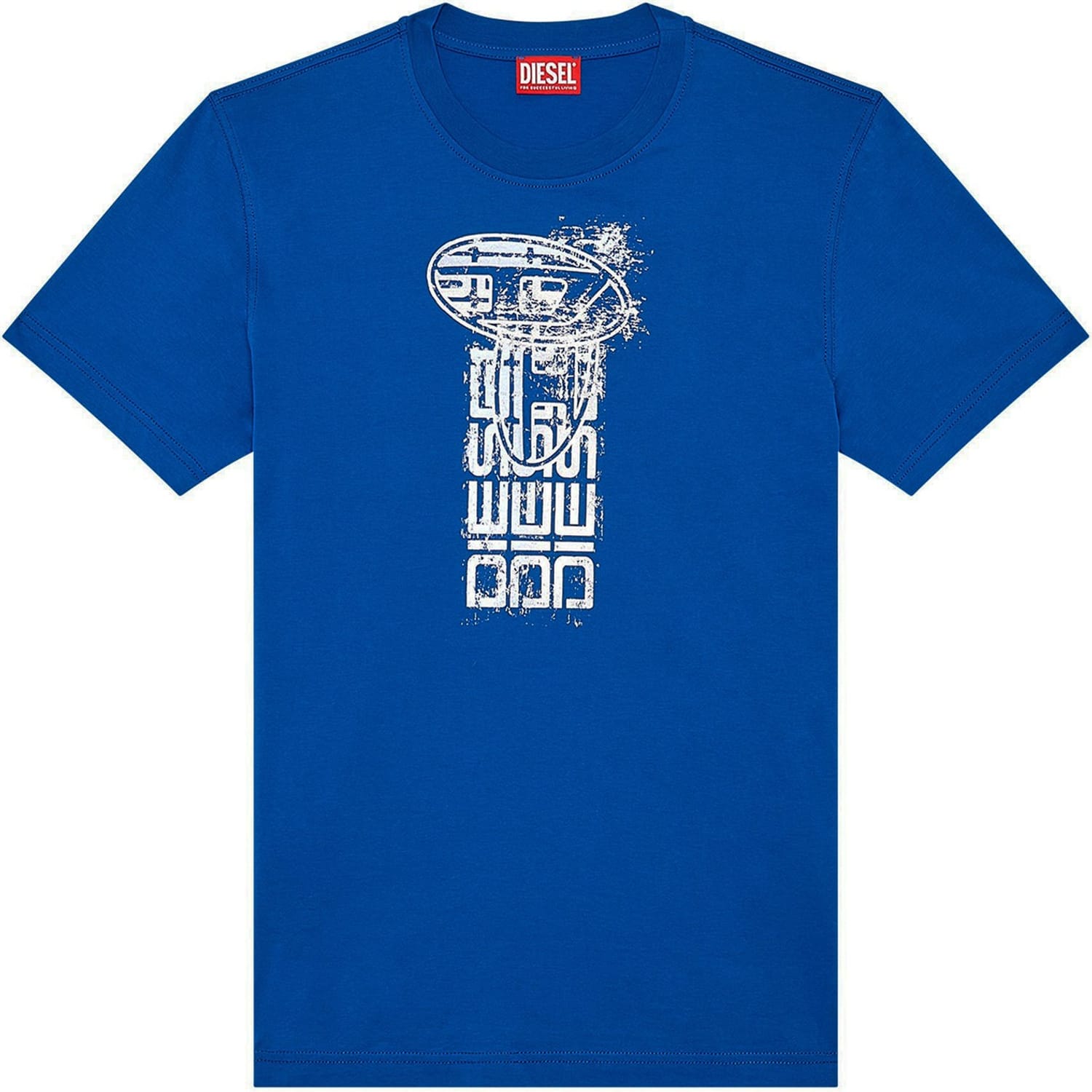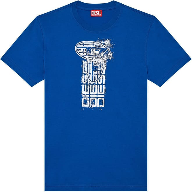 Diesel's casual t-shirt features a graphic print and a regular fit, perfect for everyday wear. With a crew neck and short sleeves, it offers a comfortable and stylish look. The design is enhanced with a logo embellishment, making it a standout piece in any wardrobe. -
