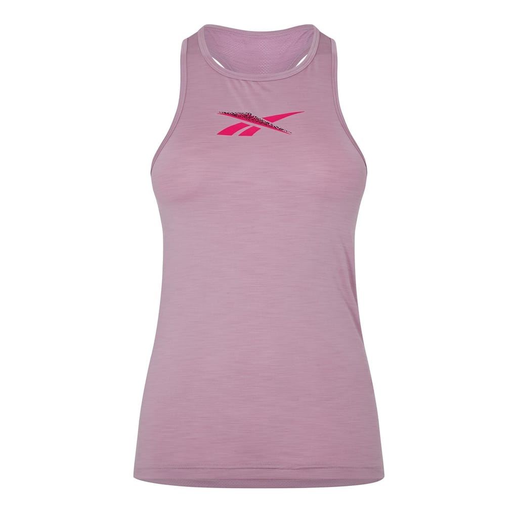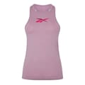 This sleeveless Reebok tank top from the Barbie collection features a crew neck and a slim fit. Adorned with a subtle logo, its solid pattern offers a classic and clean look, making it a versatile addition to your wardrobe. -