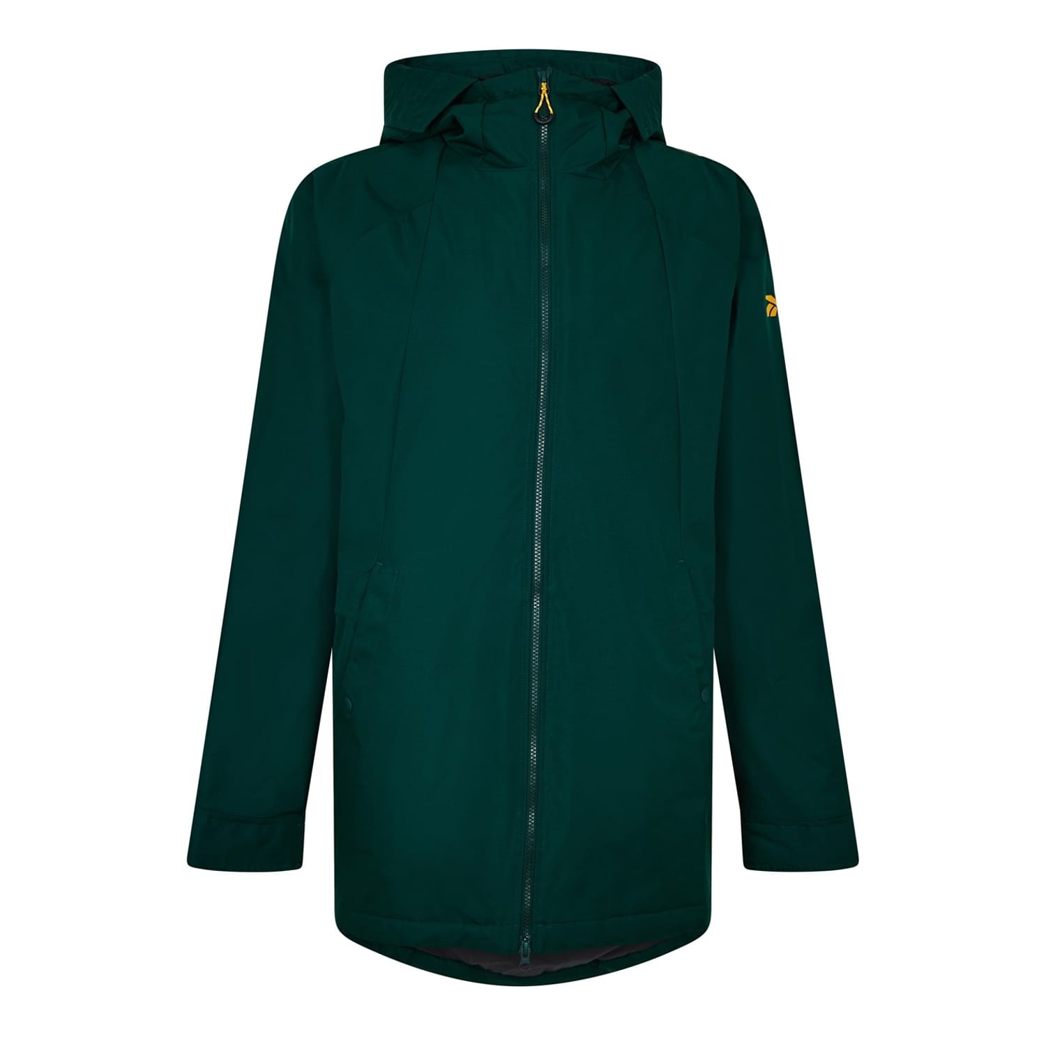 Reebok's hooded parka jacket is a versatile piece for sport, casual, and outerwear collections. This long, solid-pattern coat features a curved hem, relaxed fit, and a secure zipper closure. Embellished with the iconic logo, it offers long sleeves for added coverage and comfort. -