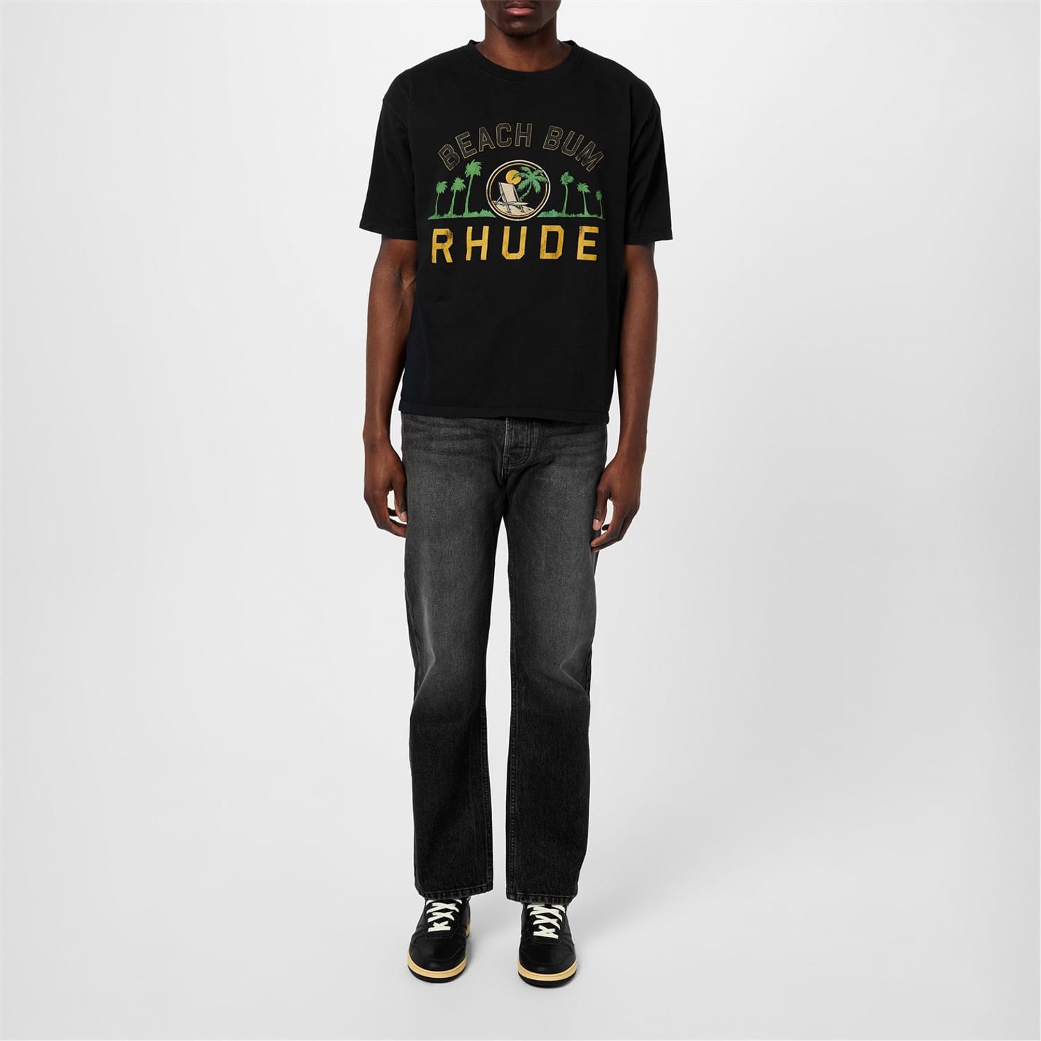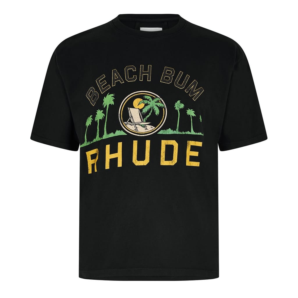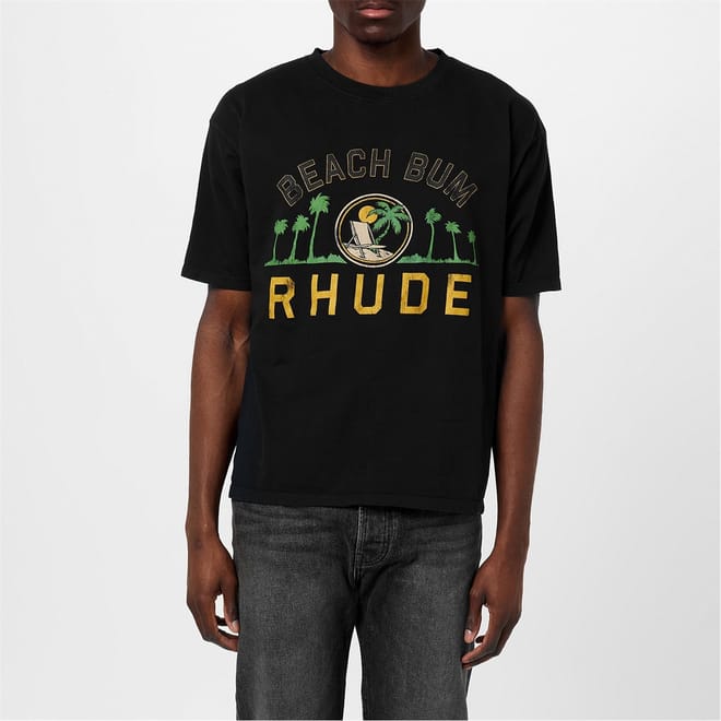 - Boasting a ribbed crew neckline and short sleeves for a casual aesthetic, the discreet tone-on-tone stitching adds a touch of timeless elegance to the look, emblematic of the brand's attention to detail. With a solid base colour, this tee is adorned with a graphic Beach Club print on the chest, while the Rhude logo serves as a symbol of instant brand recognition. Whether you're embracing a casual day out or indulging in poolside relaxation, Rhude's Palmera Tee is the epitome of off-duty luxury.