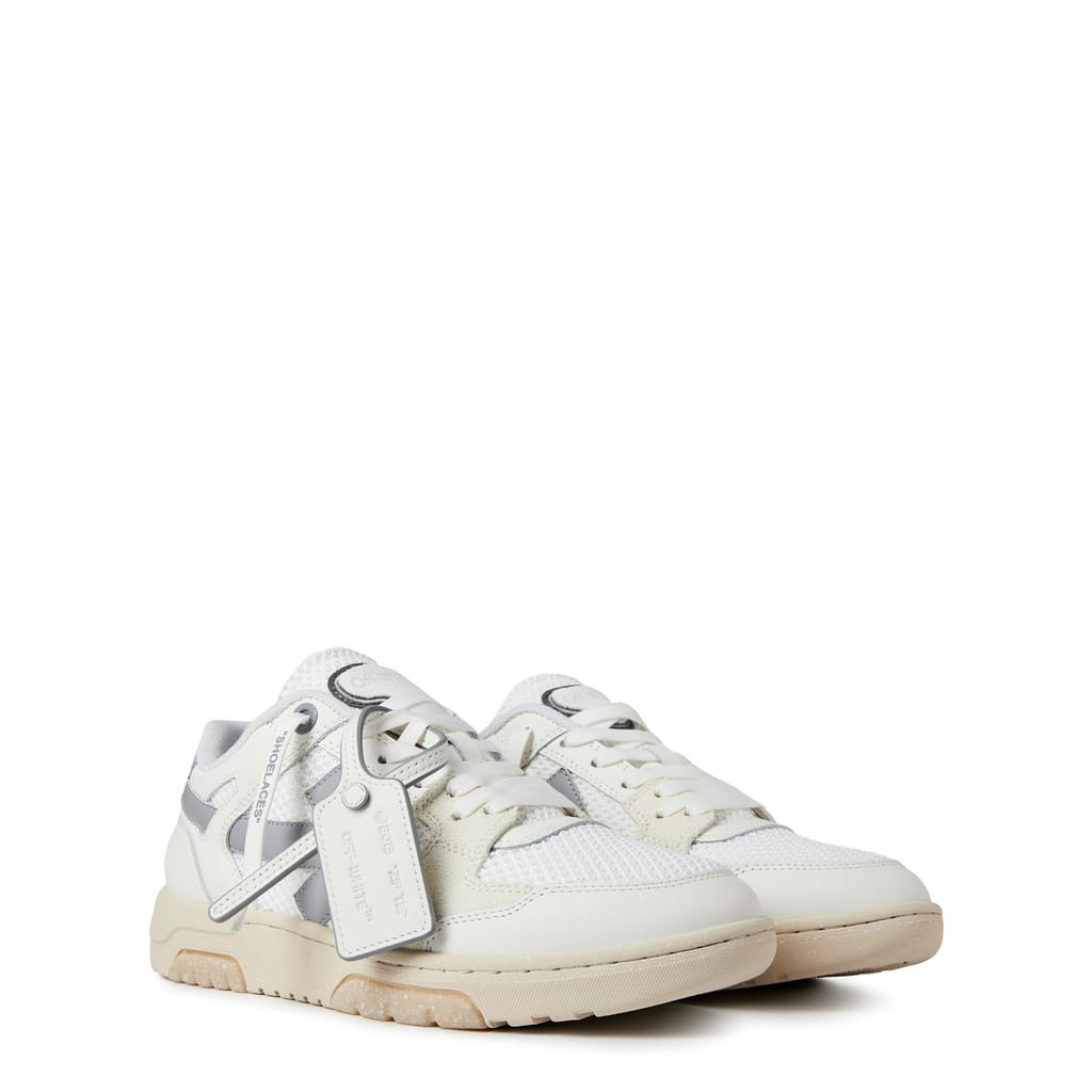 Refresh your footwear collection with the Out of Office Low Trainers from Off White. Expertly crafted in calfskin leather atop a classic rubber sole, this pair features a round toe, lace fastenings, padded ankle collars, and perforations to the toe box. A cohesive colourway complements the iconic Arrows motif, a classic Off-White design code, for a high-end finish and instant brand recognition.