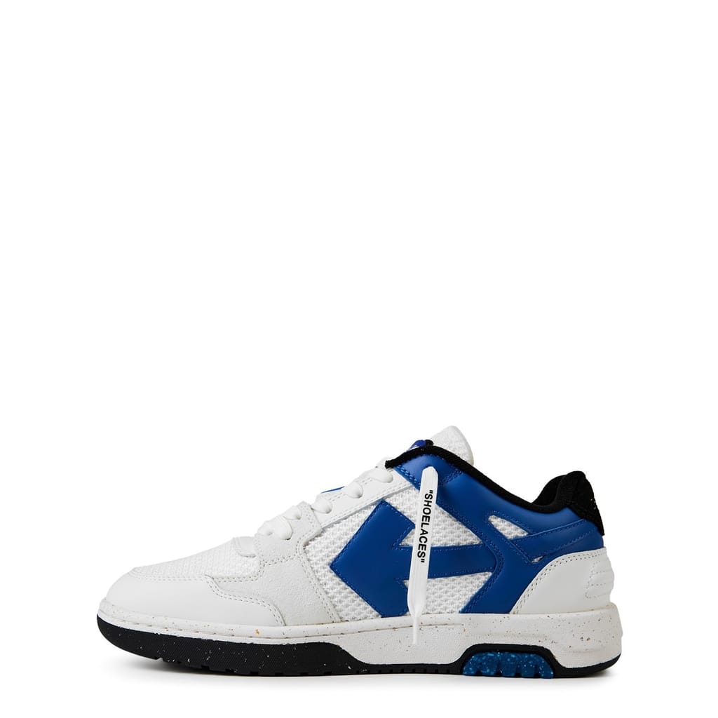Refresh your footwear collection with the Out of Office Low Trainers from Off White. Expertly crafted in calfskin leather atop a classic rubber sole, this pair features a round toe, lace fastenings, padded ankle collars, and perforations to the toe box. A cohesive colourway complements the iconic Arrows motif, a classic Off-White design code, for a high-end finish and instant brand recognition.