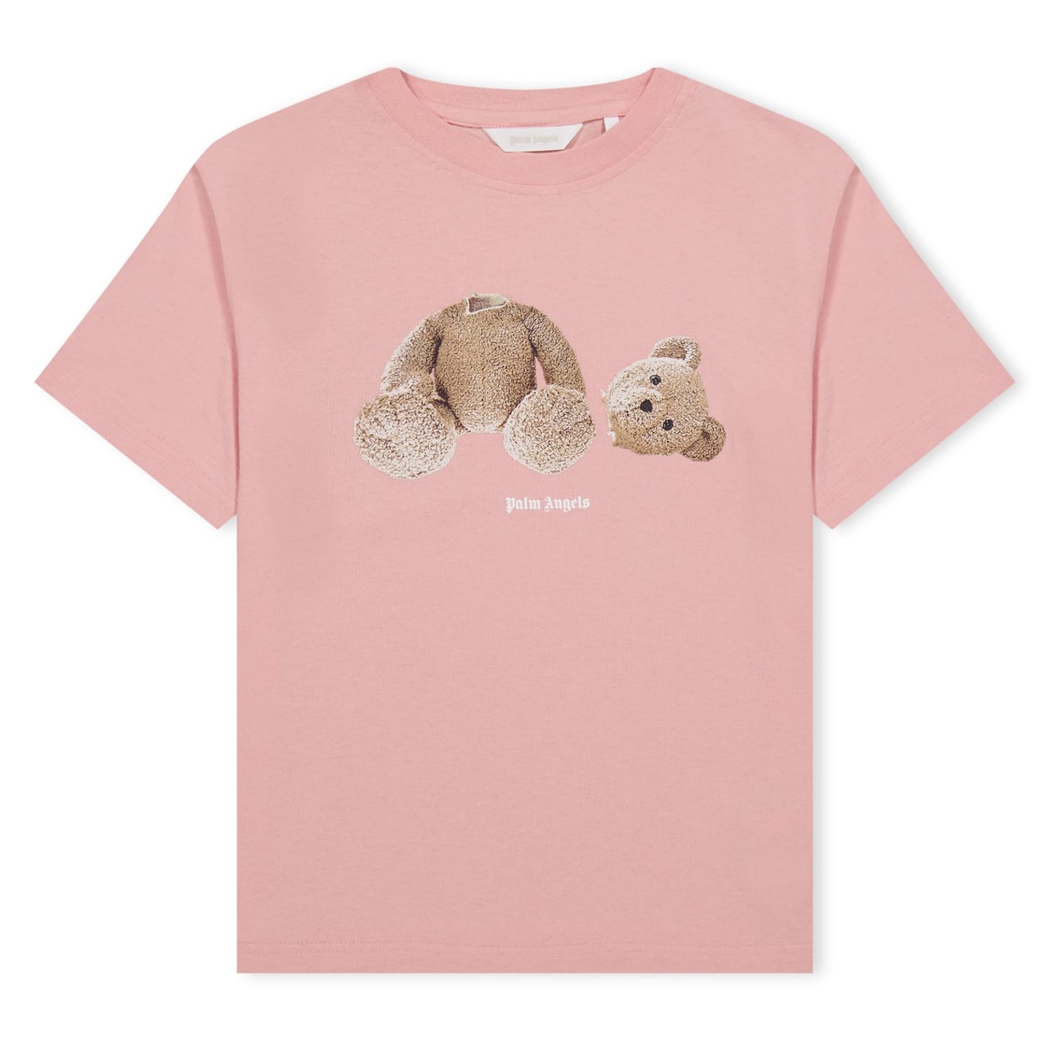 Treat your young one's staple collection with this iconic Bear T Shirt from Palm Angels. Crafted in a pure cotton composition, this t shirt is cut in a regular fit and features a ribbed crew neckline, short sleeves, a straight hemline and elasticated trims for a comfortable wear. Designed in a solid block colouring throughout, the look is finished with the brand's signature Bear printed to the chest and the signature Palm Angels typography for a high end appeal. Machine washable at 30 degrees.