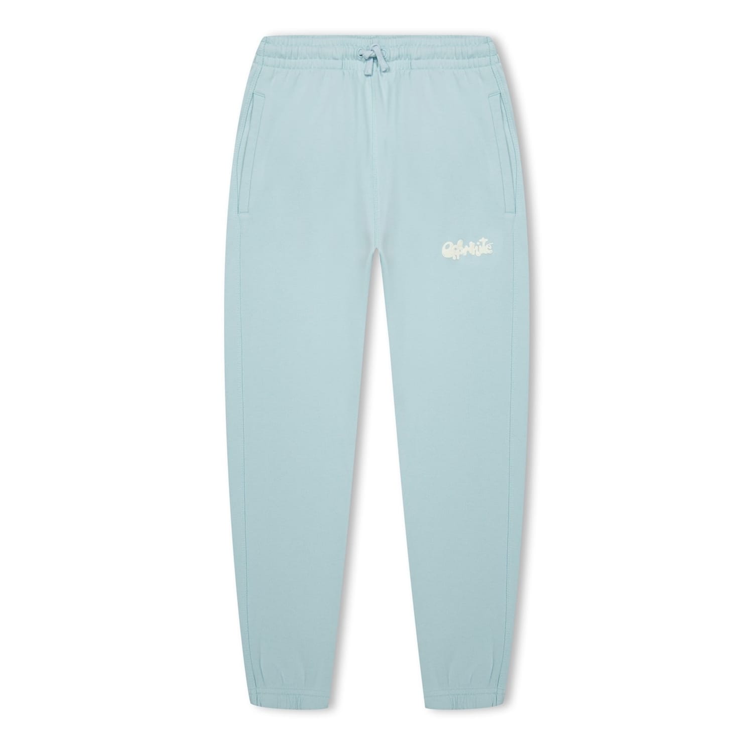 - Designed with an elasticated waistband secured with an external drawcord, the elasticated cuffs cut to the ankle provide your little one's with the freedom of movement they need when playing with friends. Complete with two slip pockets at the hips for added convenience, the iconic Off White logo printed on the leg adds a stamp of exclusivity to these kids jogging bottoms.