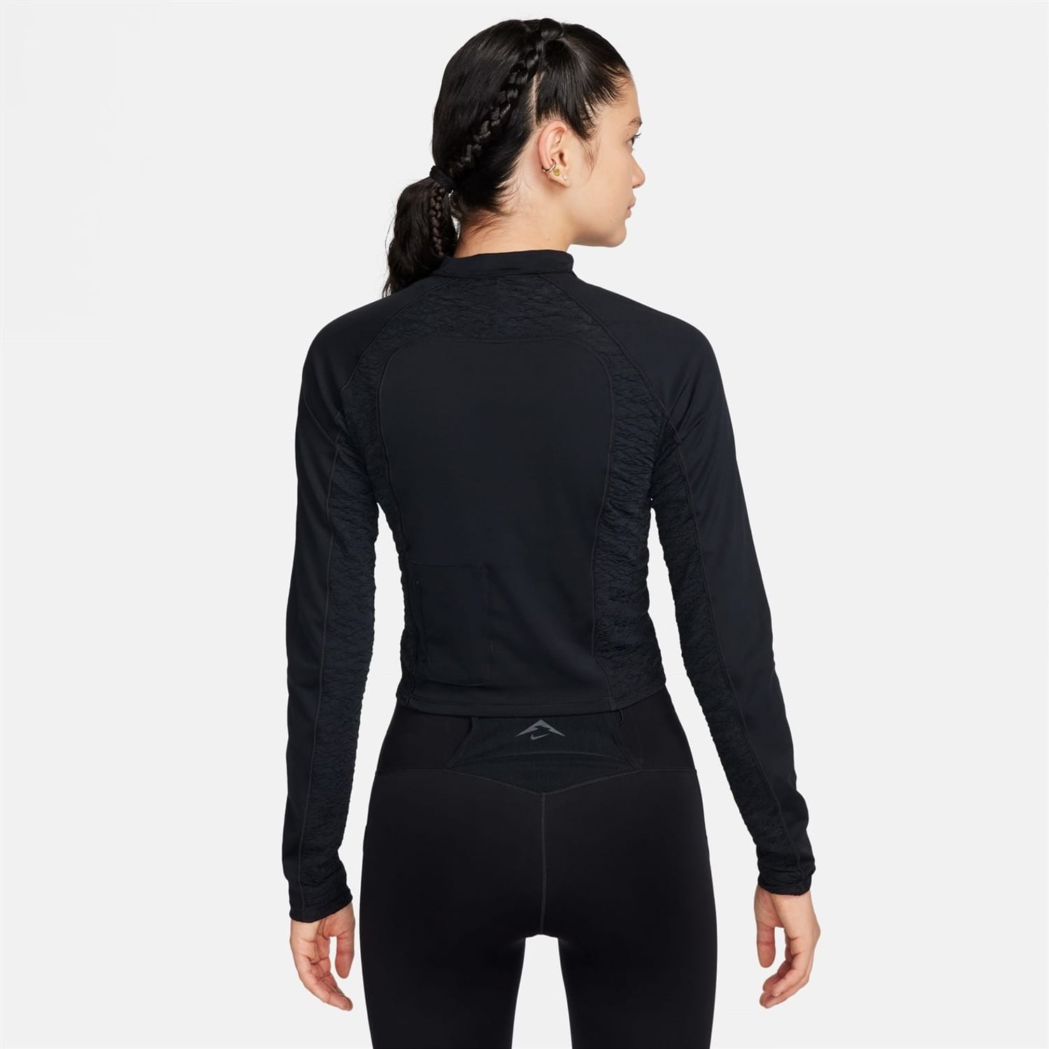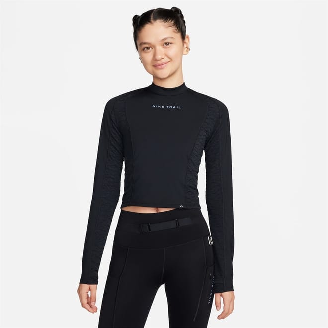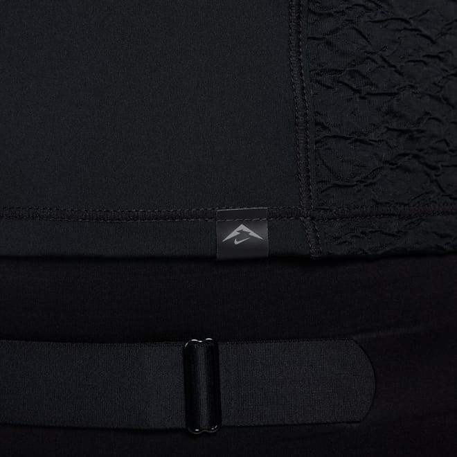 Whether you're out for a quick forest jog or a longer mountain run, Nike Trail has the durability and adaptability to help make connecting with your surroundings easier, even in dynamic conditions. This top's irresistibly smooth and ultra-stretchy fabric gives you a snug hold as you connect with your surroundings. A zippered pocket on the back lets you keep small essentials close and secure. -