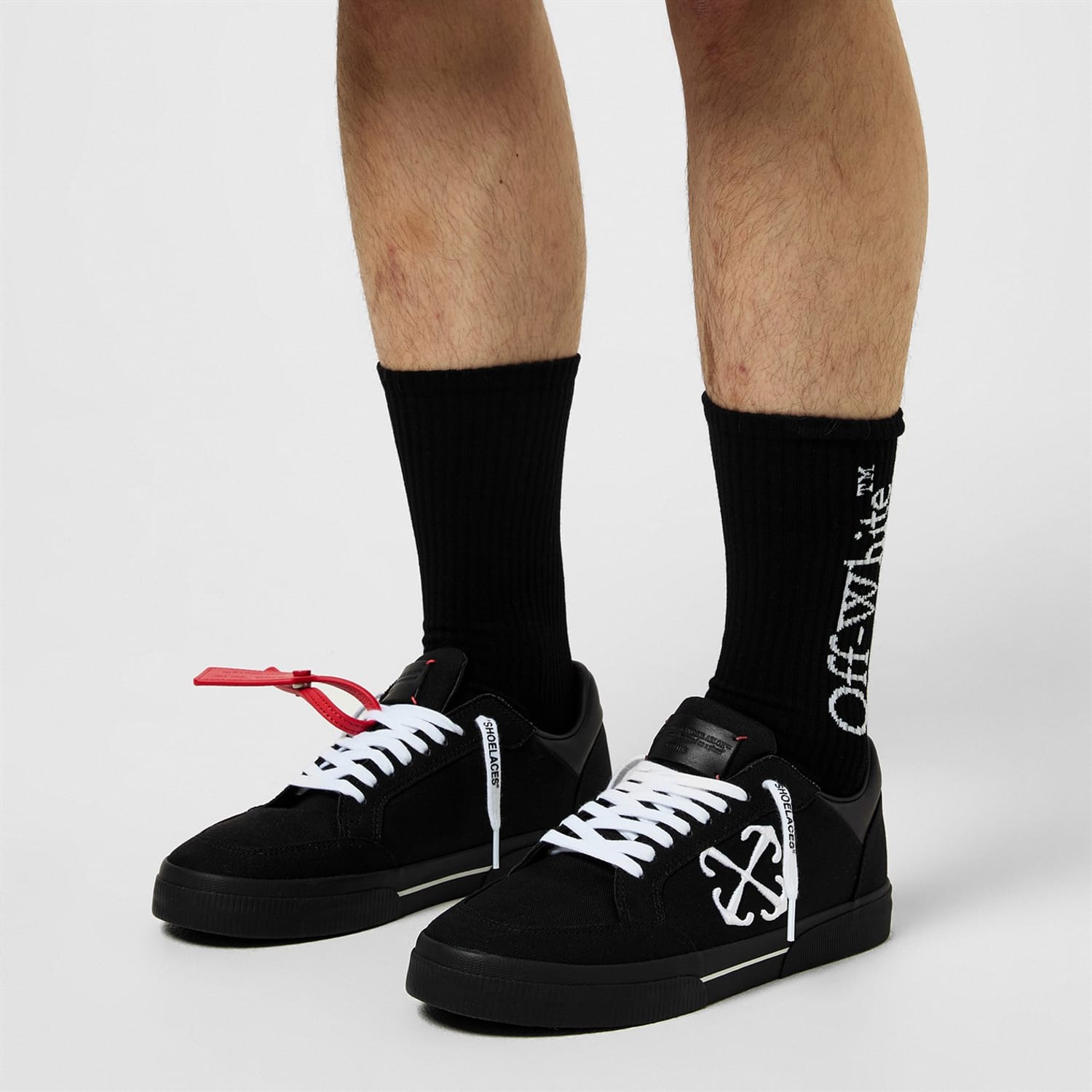 - Off-White's signature logo on the ribbed shafts and soles for instant brand recognition.