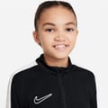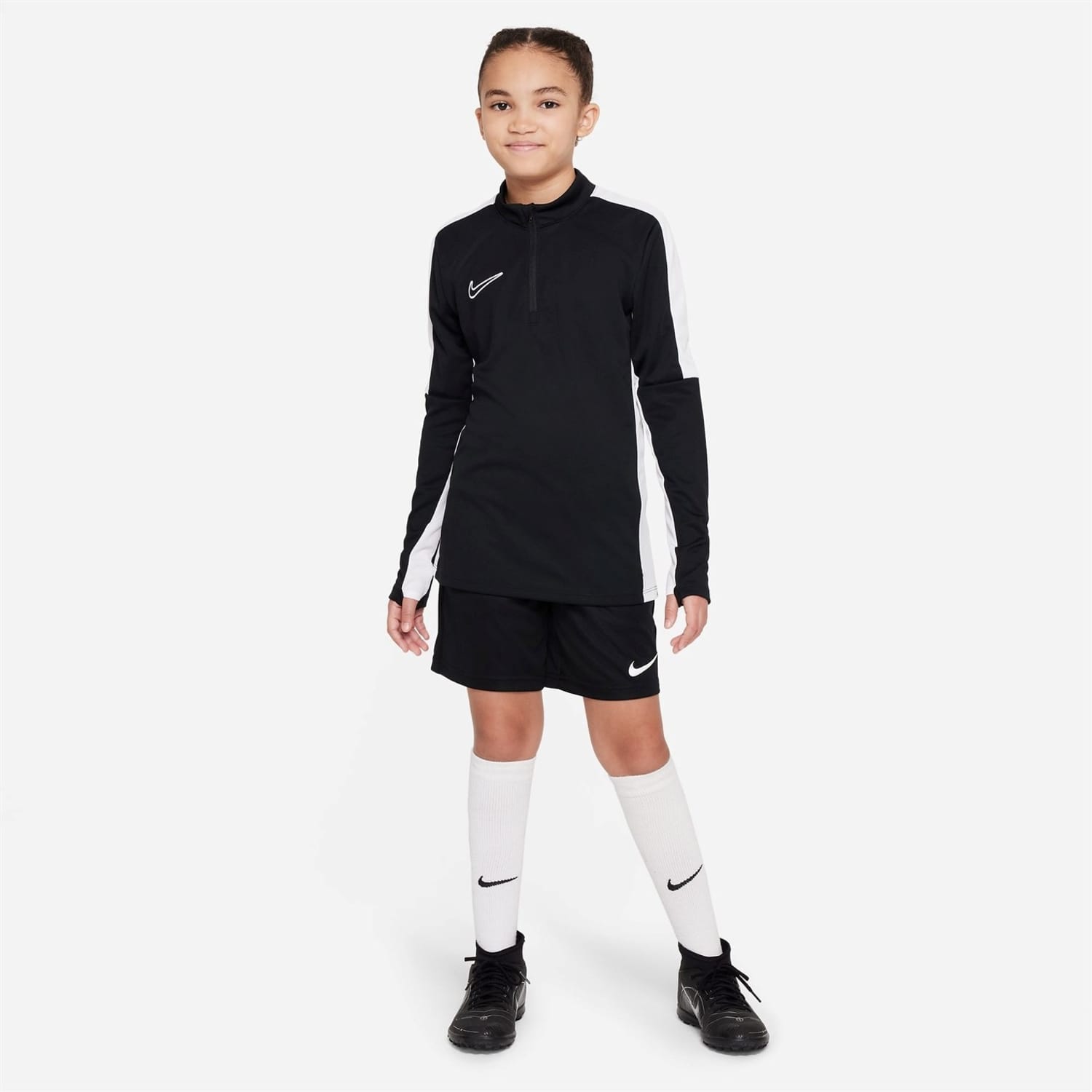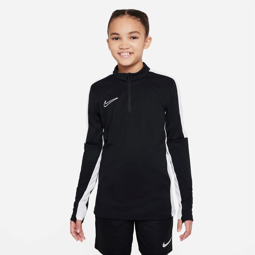 This Nike drill top is perfect for kids' activewear. Featuring a high neck and long sleeves, it offers a regular fit with a ribbed cuff for comfort. The solid pattern and logo embellishment add a stylish touch. Designed with dri-fit technology, it ensures breathability and comfort across all seasons. The zipper closure provides ease of wear. -