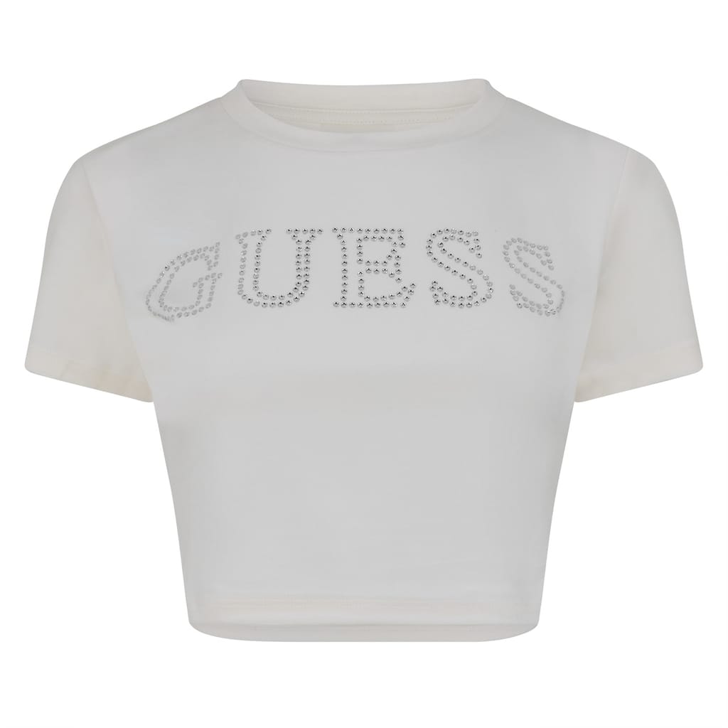 Discover the Guess cropped top, featuring a crew neck and regular fit for a comfortable wear. This top showcases a striking graphic print and is embellished with the iconic logo, making it a standout piece in your wardrobe. -