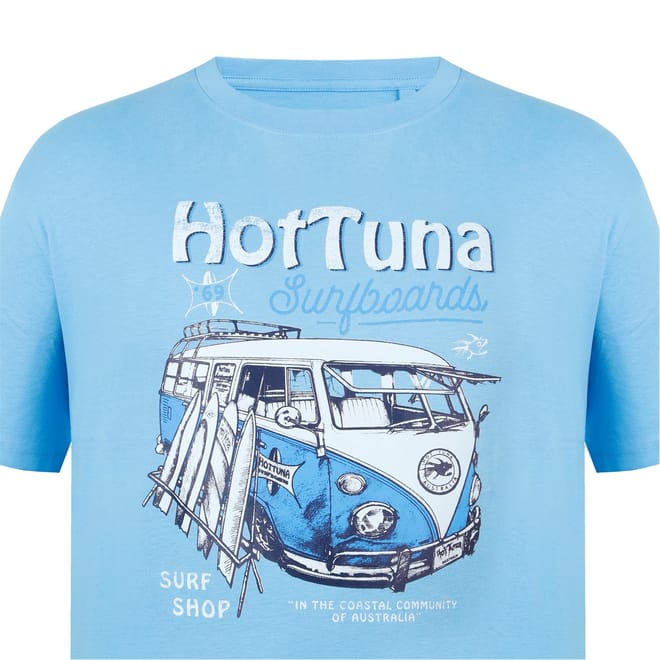 - Refresh your off-duty wardrobe with the Crew Neck T-Shirts from Hot Tuna. A classic silhouette constructed from a peached cotton fabrication, it features a crew neck, short sleeves and a a straight hem. Decorated in a solid colour throughout, the design is elevated with a large printed graphic to the chest. For care instructions, see inner labelling.