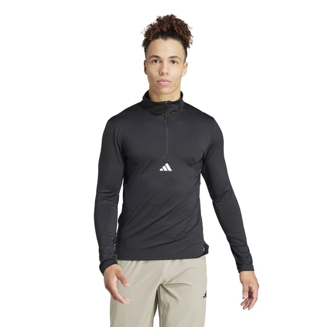 adidas' Workout Quarter-Zup Track Top is the perfect companion to your training and focuses on supporting you while you smash past your personal best. Made from a recycled polyester blend jersey for a sustainable touch, this men's top is imbued with AEROREADY technology that absorbs and evaporates your sweat- allowing you to focus on your performance.