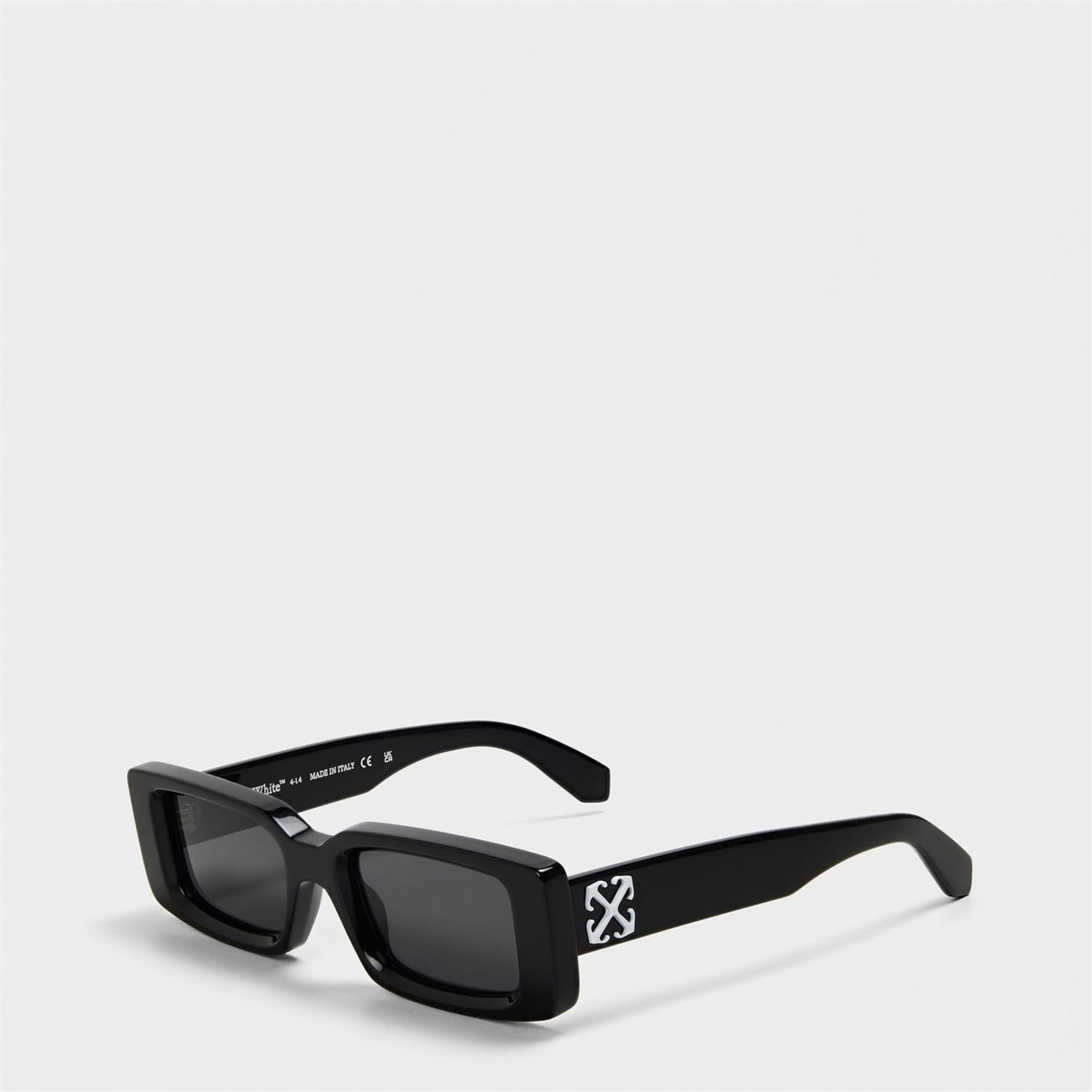 Discover the Off-White Arthur sunglasses, a stylish addition to your eyewear collection. Featuring a rectangle frame crafted from durable plastic, these full-rim sunglasses offer a sleek look with a single bridge style. Equipped with 100% UV protection, they ensure your eyes are shielded from harmful rays. The subtle logo embellishment adds a touch of brand identity, making them perfect for all-season casual wear. -