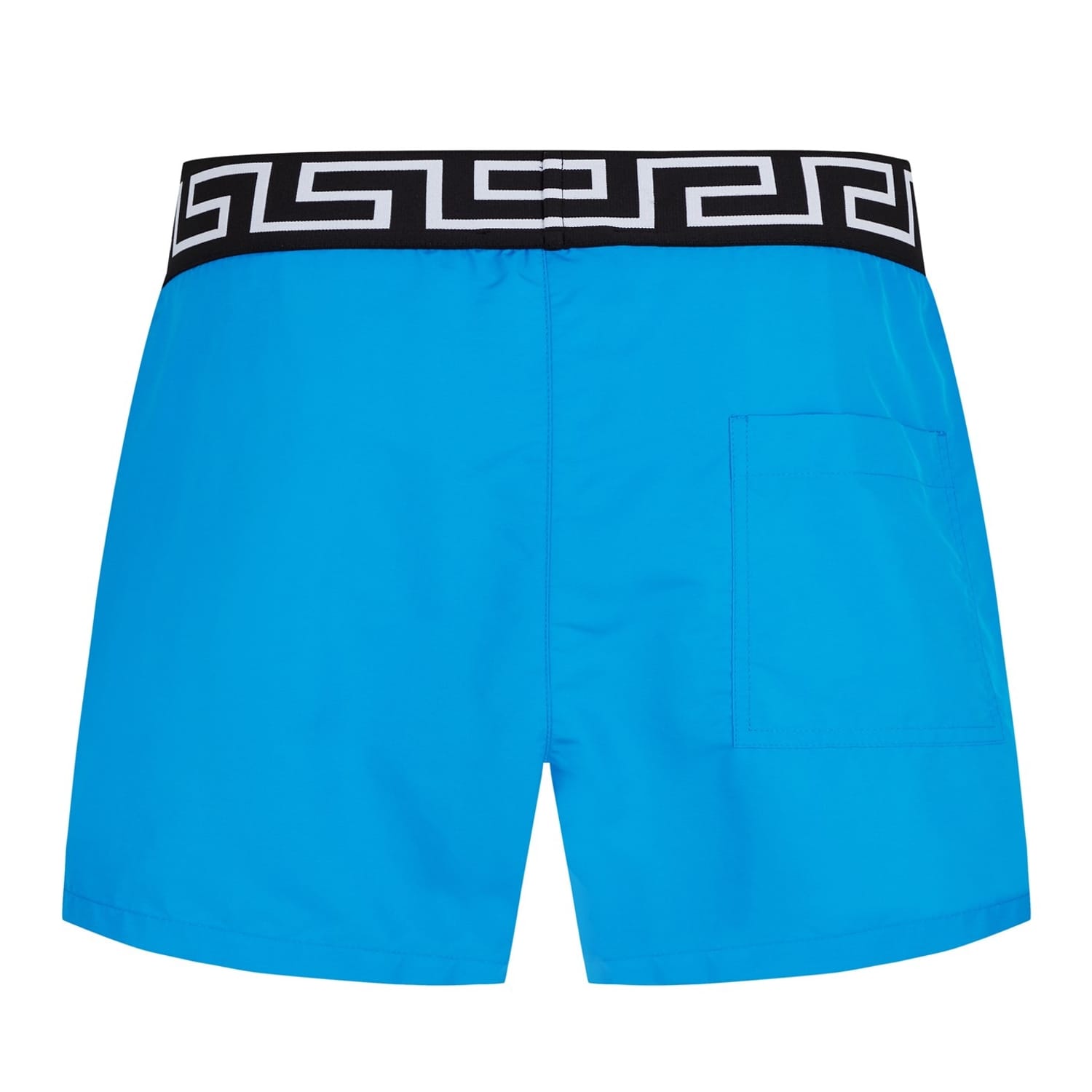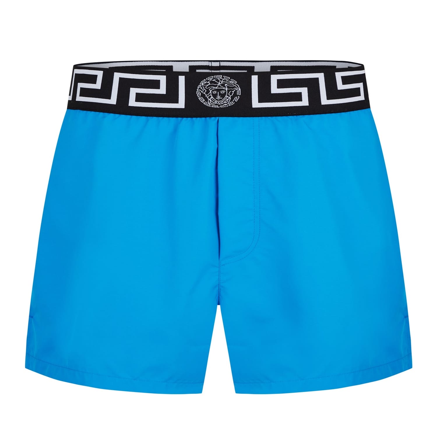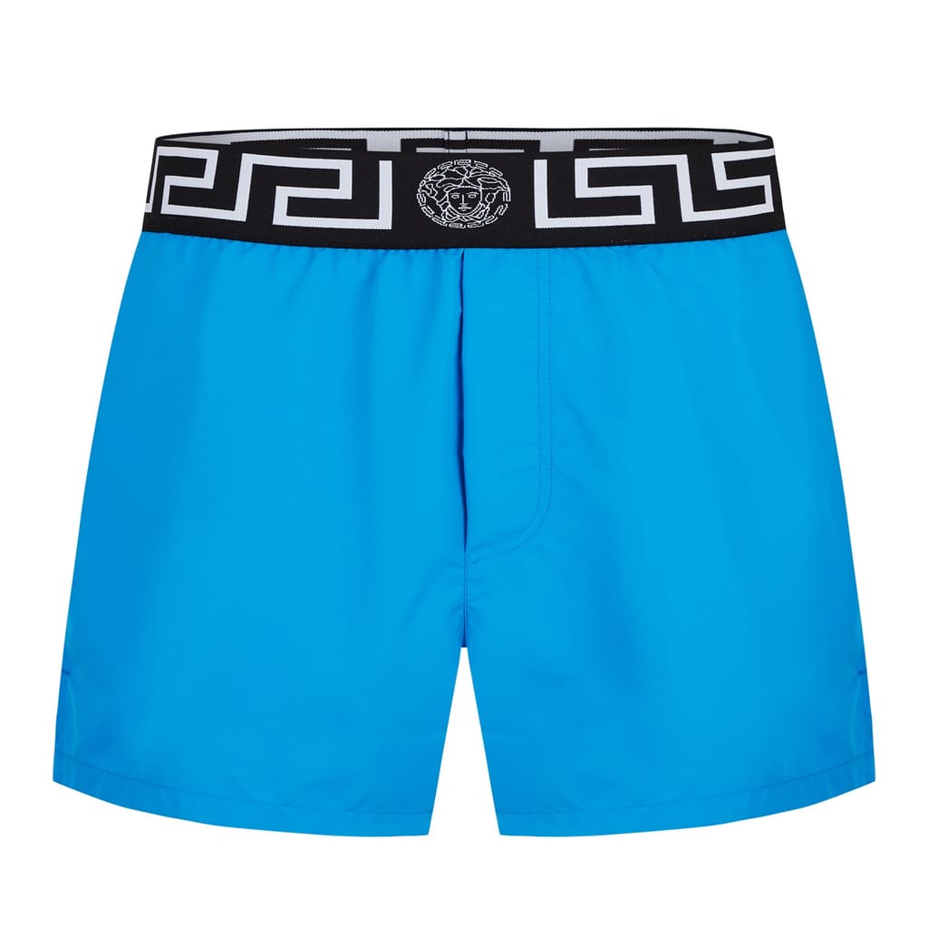 - Crafted in a block colour adorned with the iconic Greca design and Medusa motif at the waistband, Versaca's legacy is proudly showcased with every wear. Whether soaking up the sun poolside or diving into the waves, the Versace Greca Border Swim Shorts are the epitome of luxurious summer style.