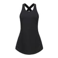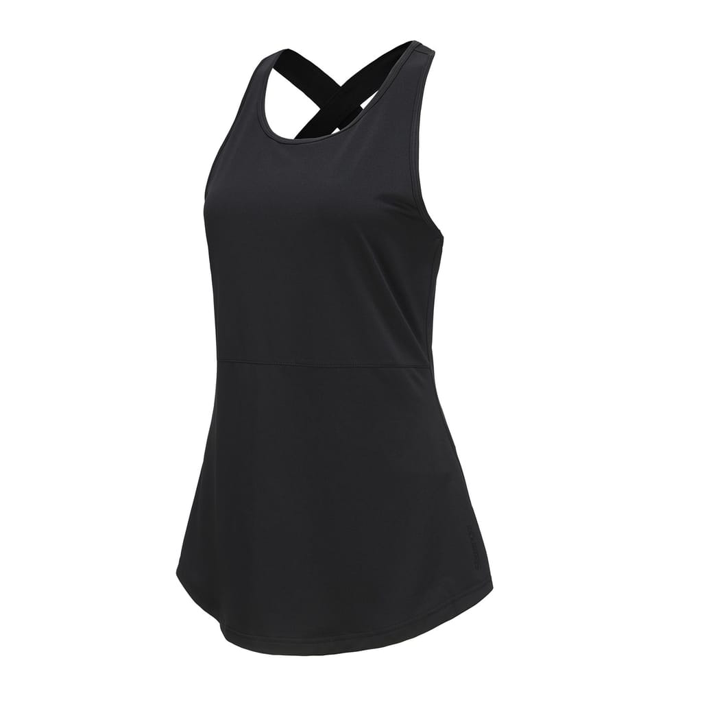 -- This breathable, flexible layer lets you move naturally from your first stretch well into the after-burn with a Y-back design.