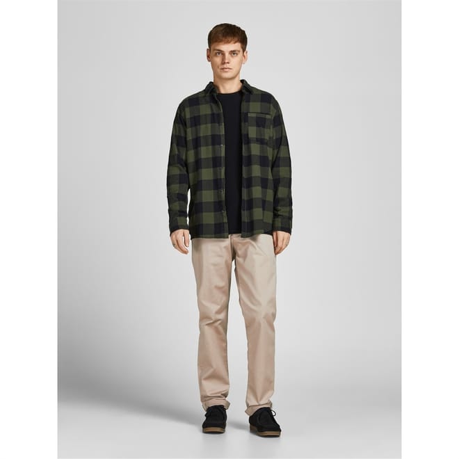 jack & jones presents these solid chinos, perfect for a casual look. Featuring a zipper closure and a regular fit, these pants offer both comfort and style. The subtle logo embellishment and practical pockets add a touch of functionality, making them a versatile addition to your wardrobe. -