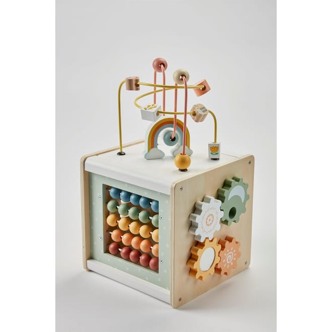 With multiple sides filled with exciting activities, the Wooden Activity Cube promotes various essential skills. From an abacus and bead mazes to rotating gears and alp...- Delivery