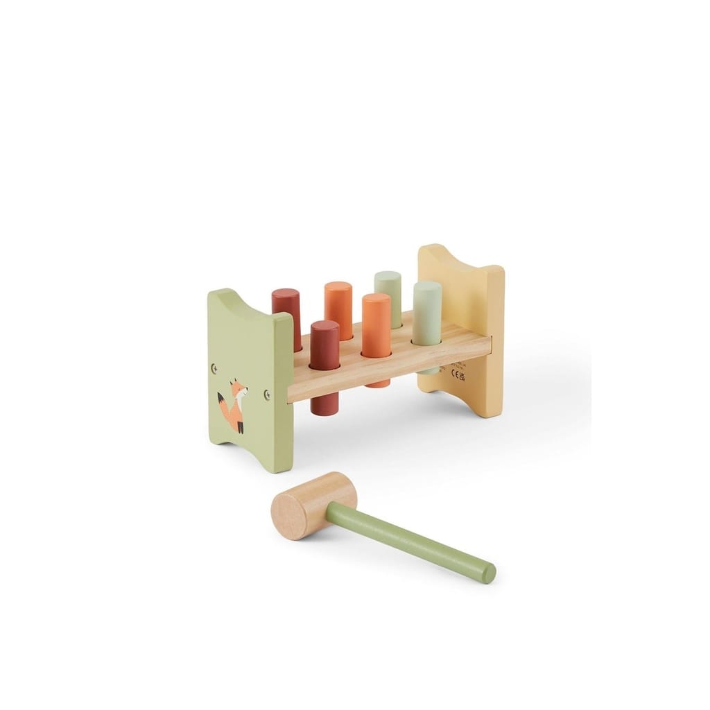 Experience the joy as you pound the colorful pegs and watch them pop up again. The Wooden Pounding Bench isn't just a plaything; it's a way to develop motor skills and early problem-solving abilities.