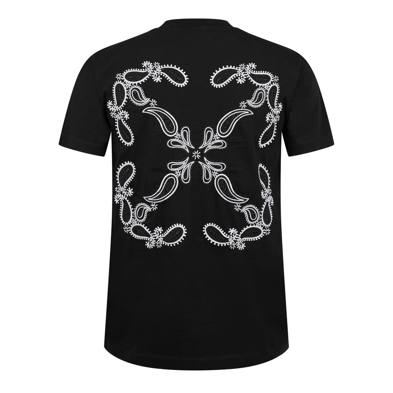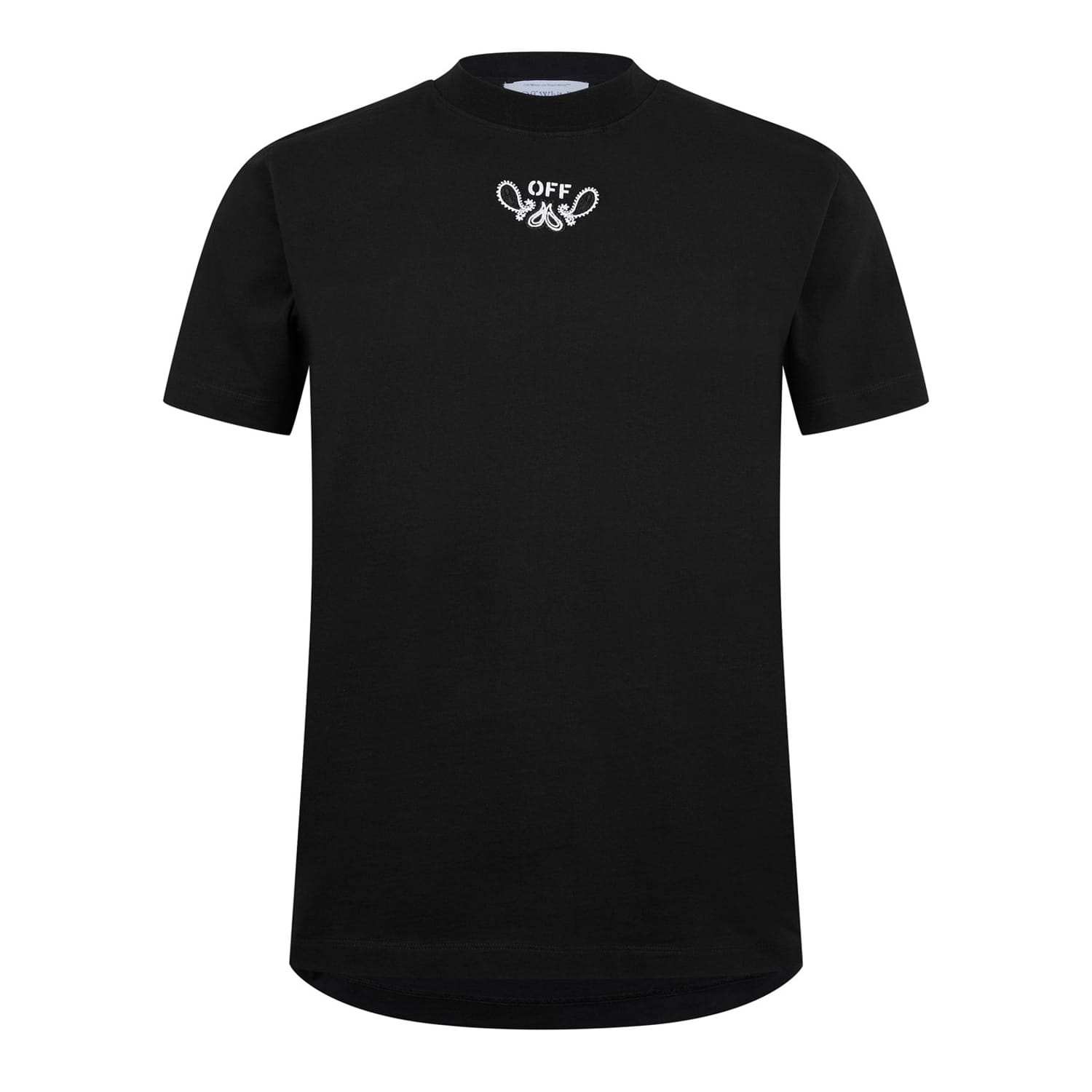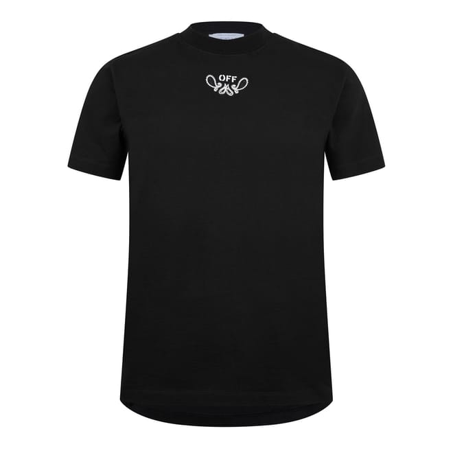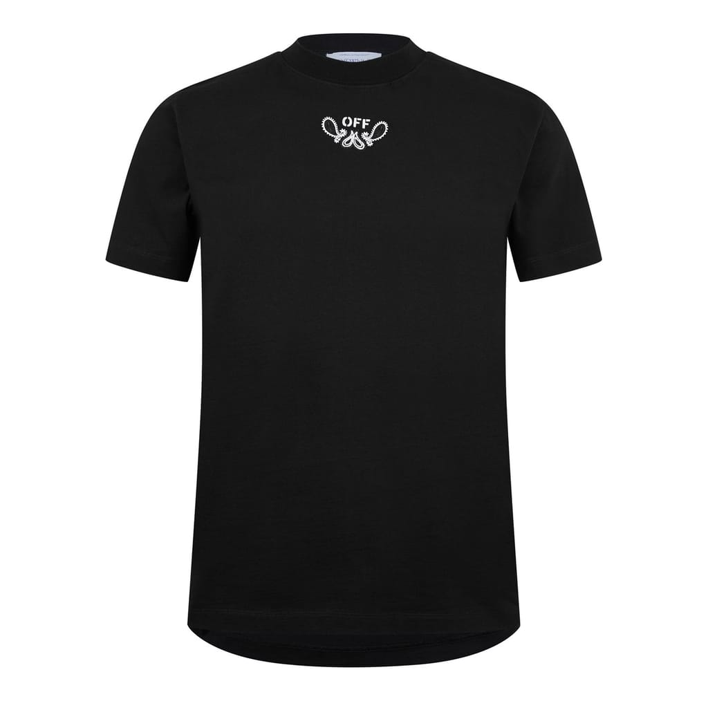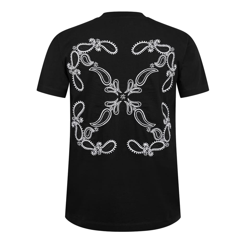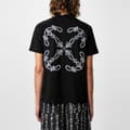 - Emblazoned with the re-imagined Bandanna Arrow logo at the back, a symbol of Off-White's pioneering influence in streetwear fashion, this tee embodies the brand's innovative spirit and unyielding creativity. Its tattoo-inspired central logo further ensures your impeccable luxury taste will be recognised from every angle, while the classic colouring guarantees effortless styling with any ensemble. Ideal for casual outings or urban adventures, this staple piece radiates an aura of exclusivity and trend-setting flair, perfect for those who dare to be different and set standards high.